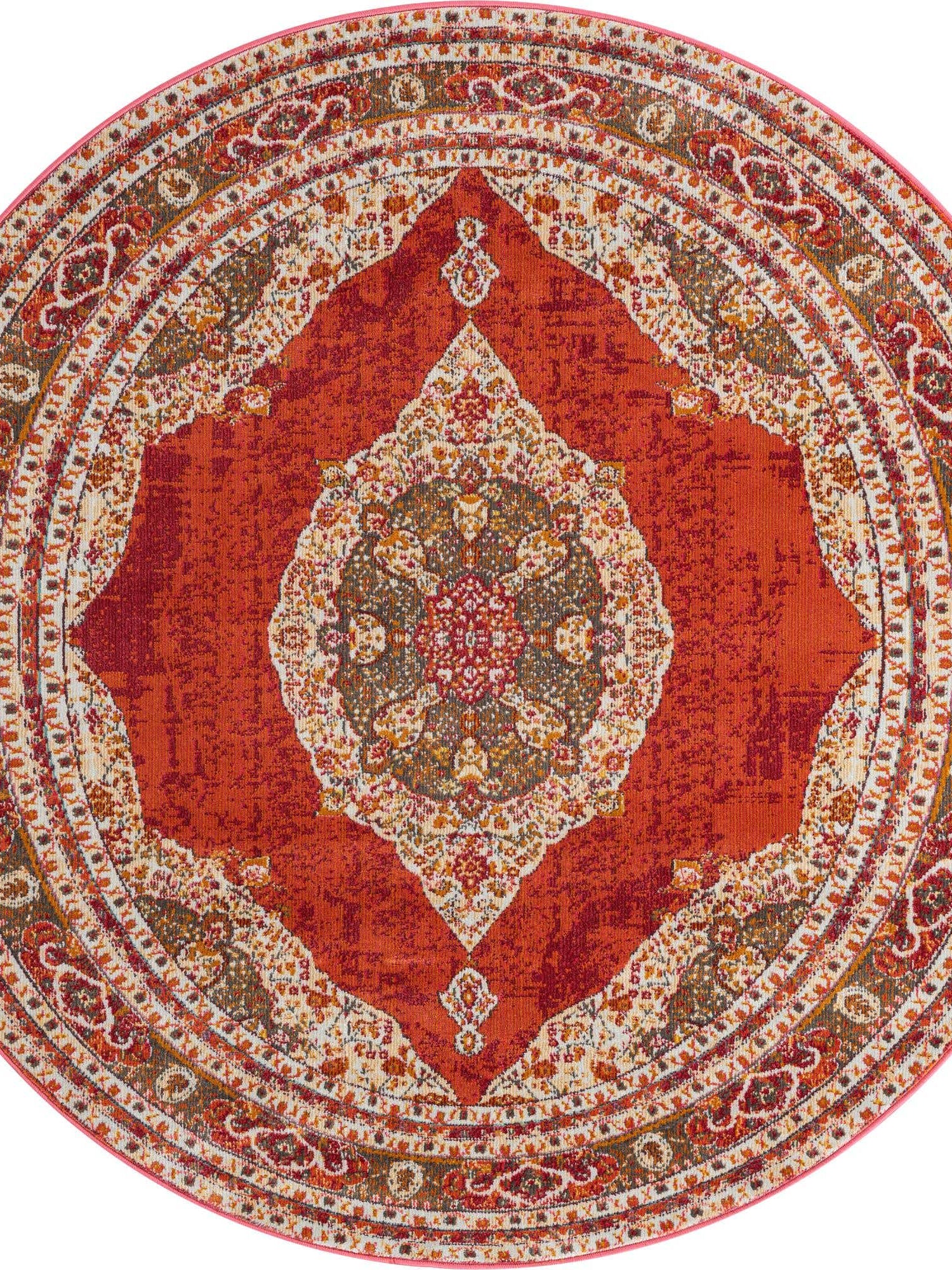 Washable Vintage Rust Red 2' x 2' Timeless Round Area Rug Easy to Clean Stain Resistant & Durable