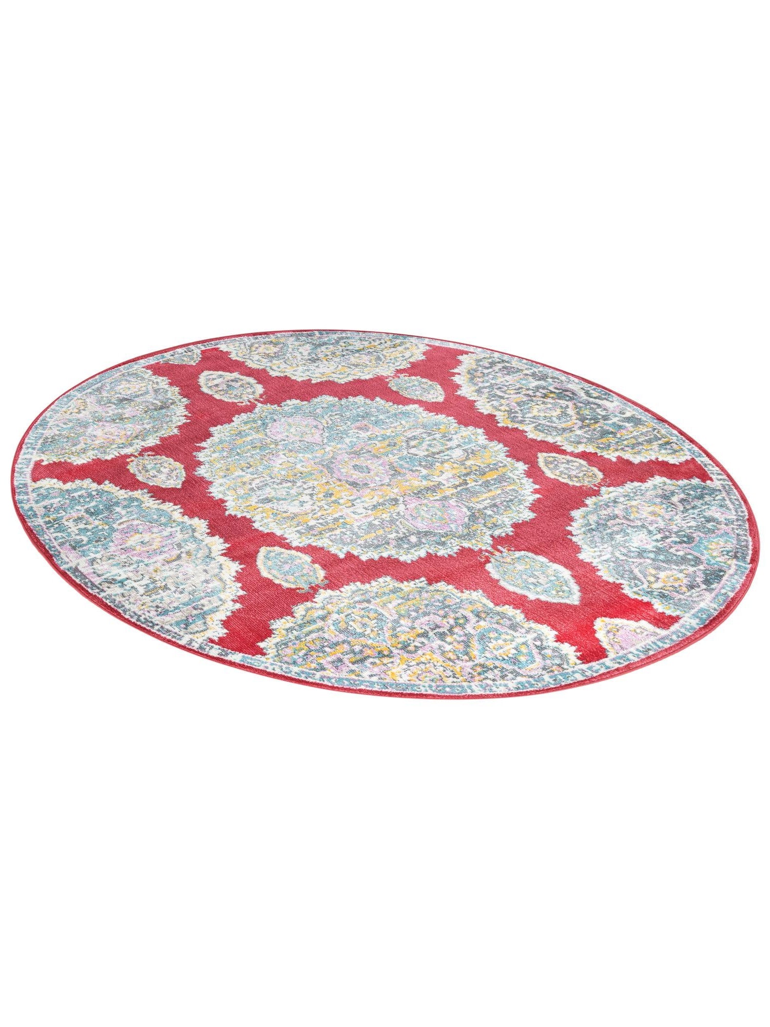 Red 5' 5 x 5' 5 Paragon Round Area Rug 100% Polypropylene Colorful Vivid Boho Style Modern Carpet for Unique Interiors