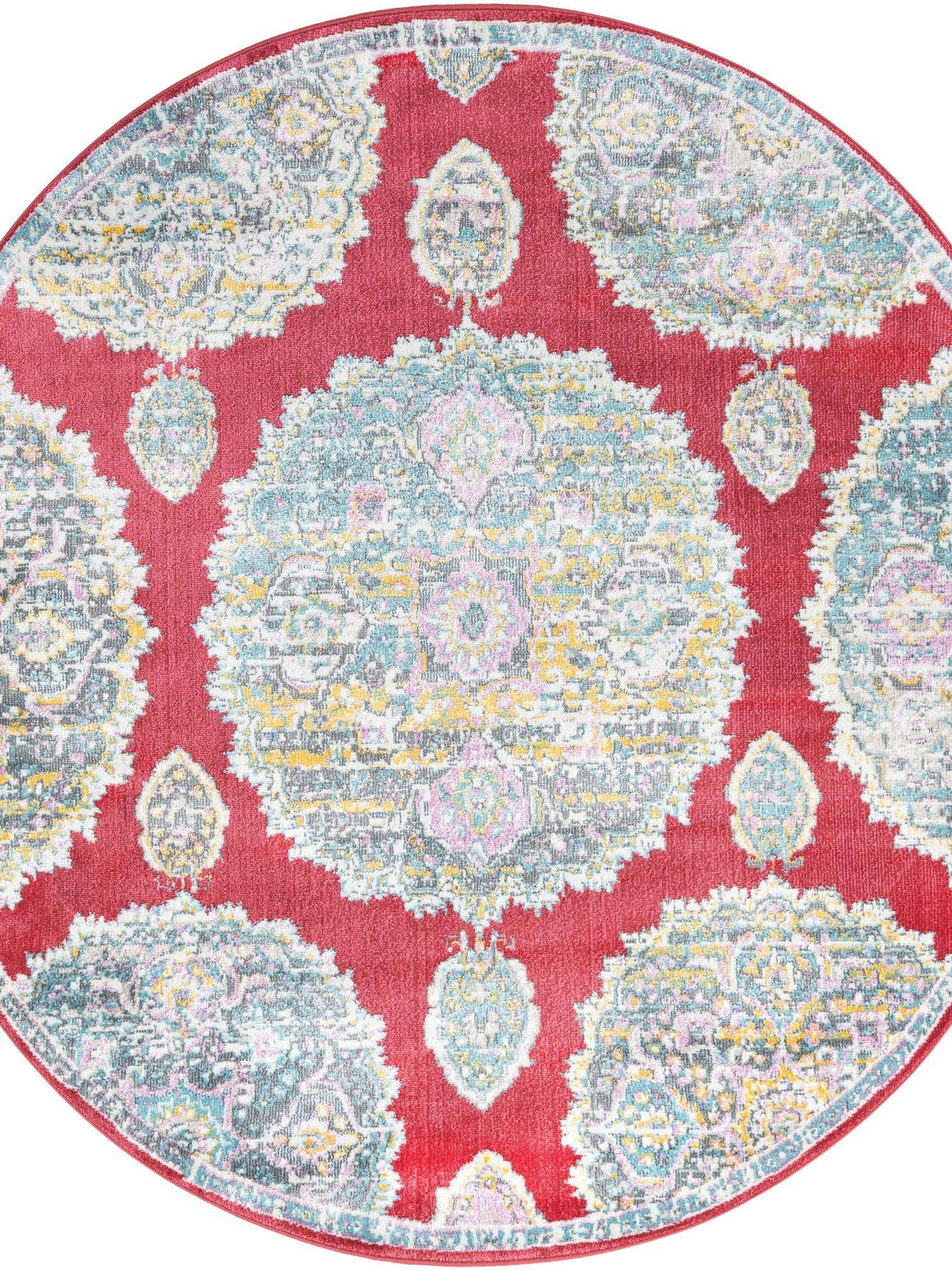 Washable Multicolor 5' x 5' Timeless Round Area Rug Easy to Clean Stain Resistant & Durable