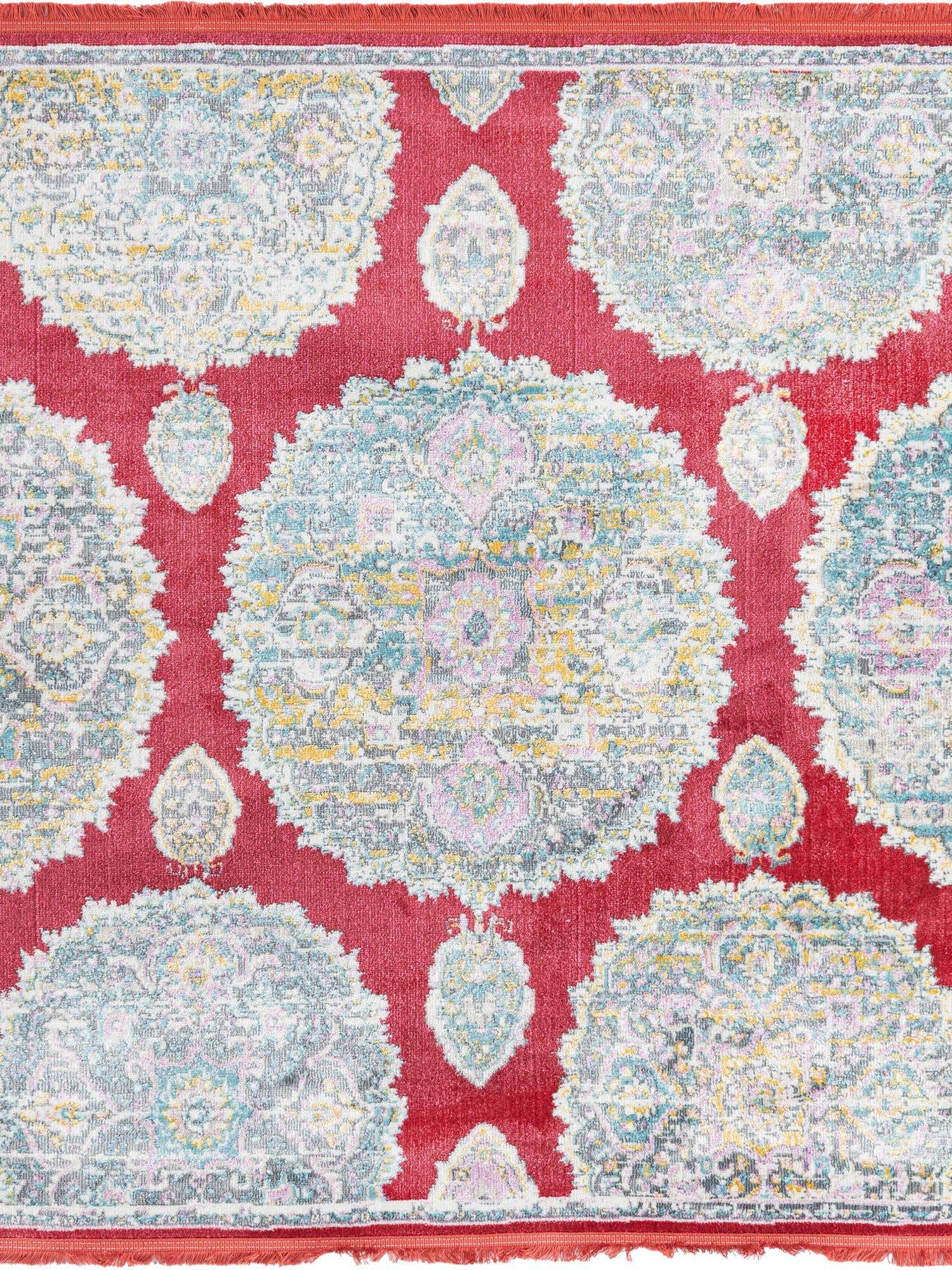 Red 5' 5 x 5' 5 Paragon Square Area Rug 100% Polypropylene Colorful Vivid Boho Style Modern Carpet for Unique Interiors