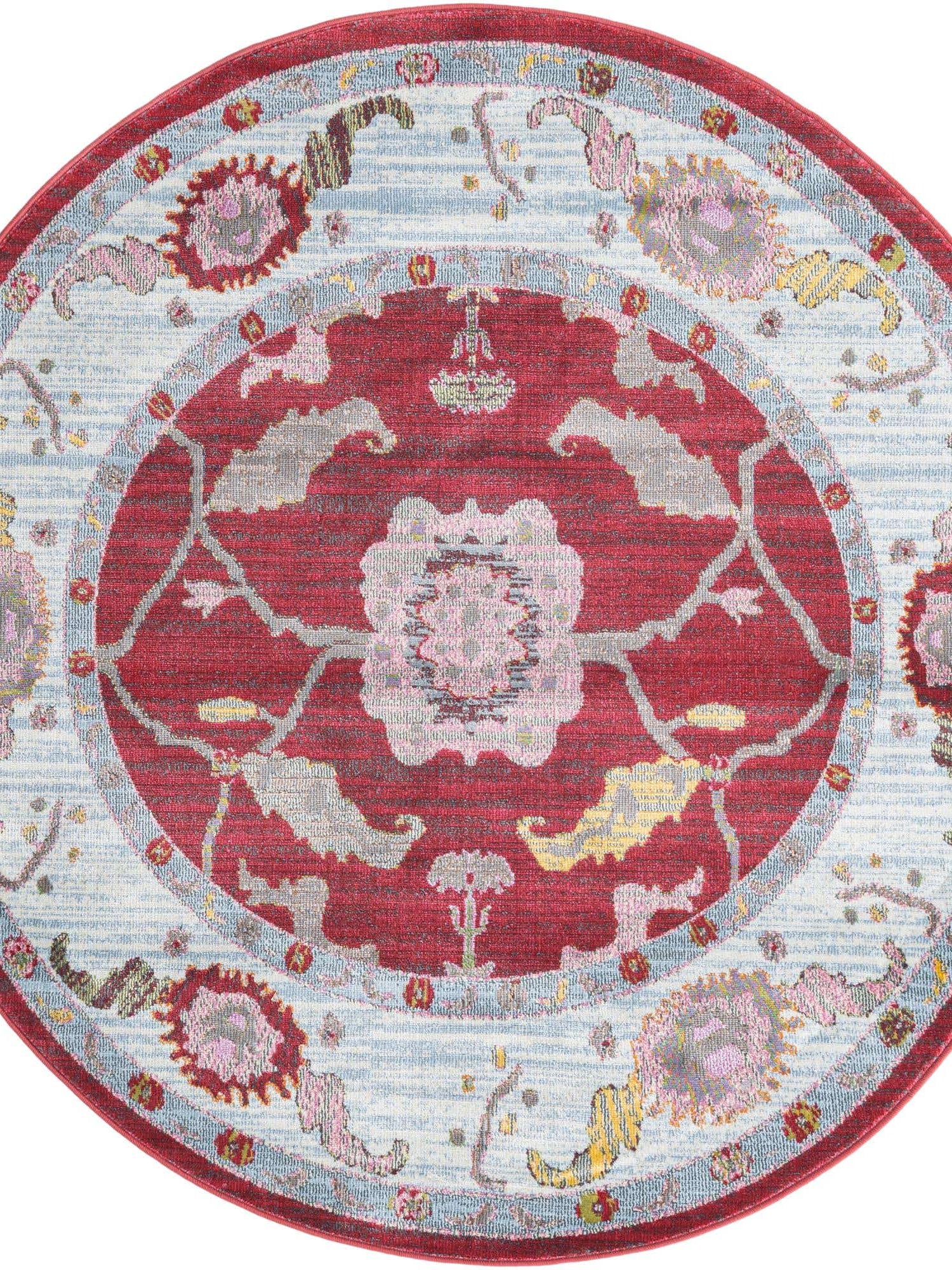 Red 5' 5 x 5' 5 Paragon Round Area Rug 100% Polypropylene Colorful Vivid Boho Style Modern Carpet for Unique Interiors