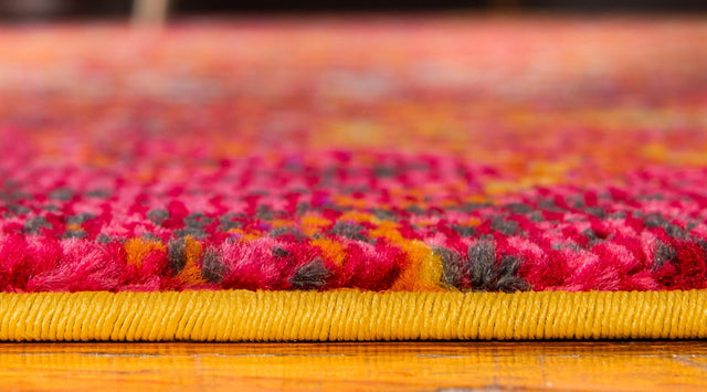 Red 6' 1 x 6' 1 Estrella Round Area Rug 100% Polypropylene Non-Shedding Stain Resistant Carpet Colorful Modern Abstract Design Easy Clean for Home Decor