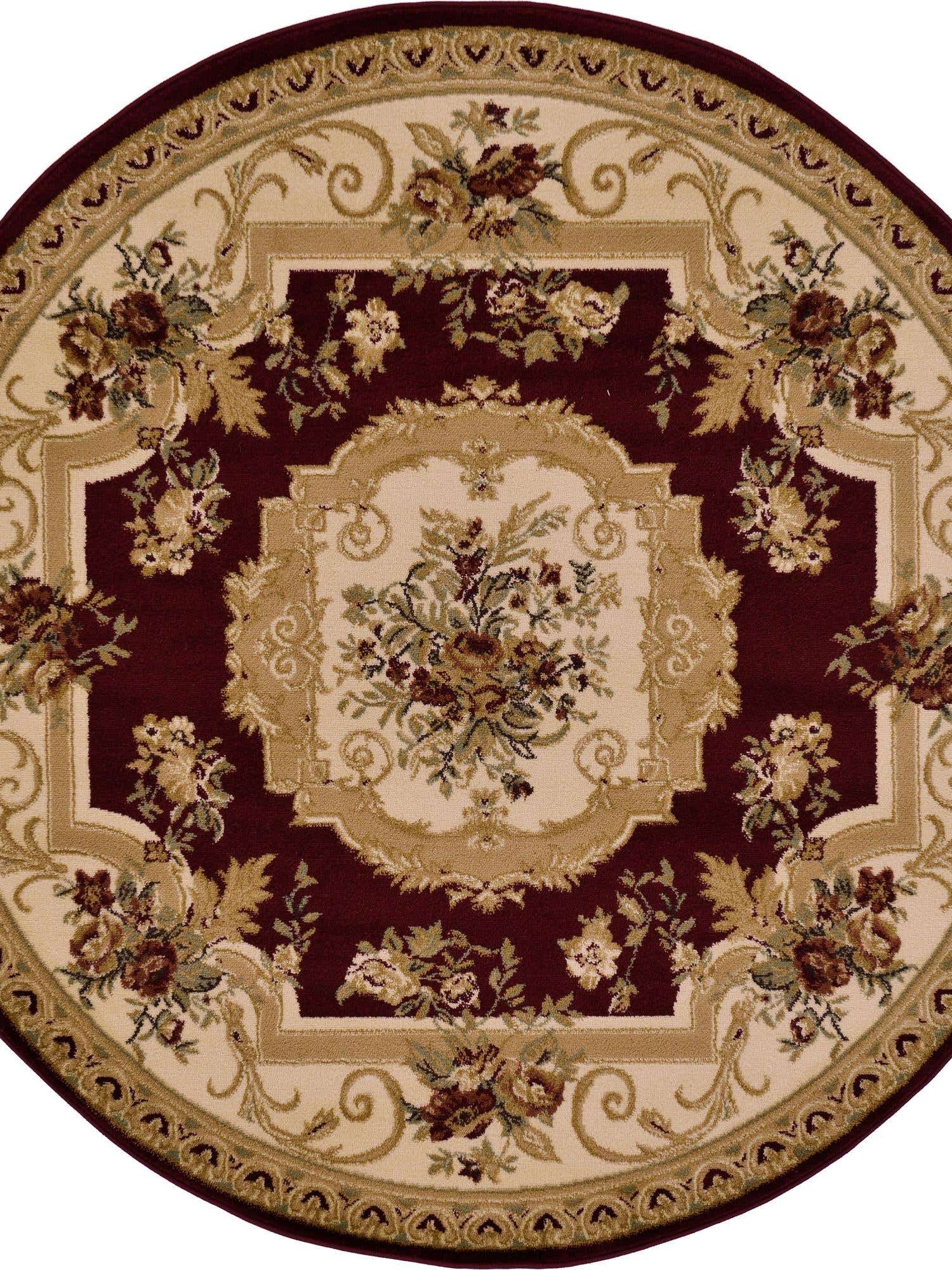 Washable Burgundy Red 5' 1 x 5' 1 Timeless Round Area Rug Easy to Clean Stain Resistant & Durable