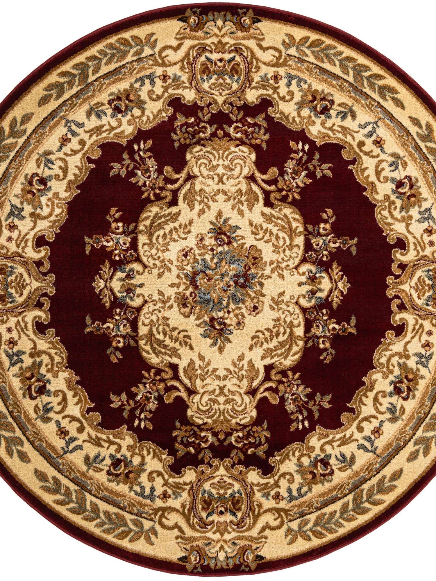 Washable Burgundy Red 5' 1 x 5' 1 Timeless Round Area Rug Easy to Clean Stain Resistant & Durable