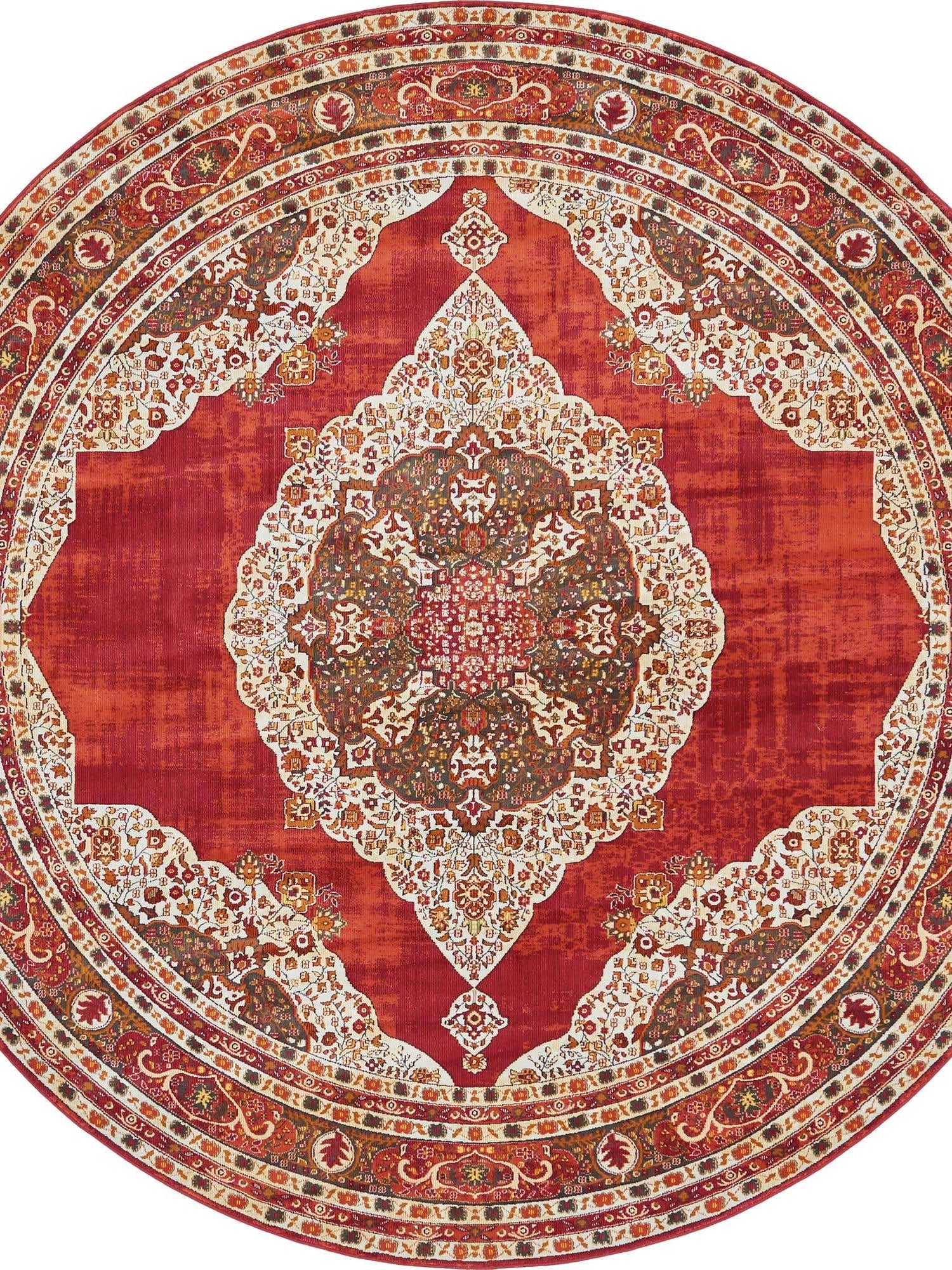 Washable Vintage Rust Red 2' x 2' Timeless Round Area Rug Easy to Clean Stain Resistant & Durable