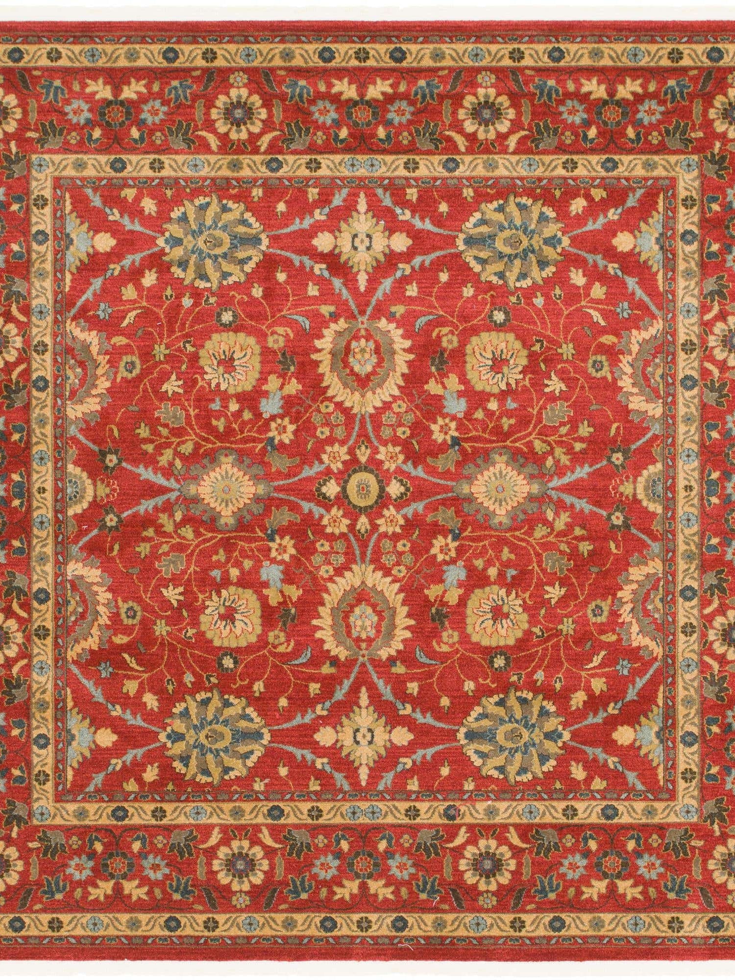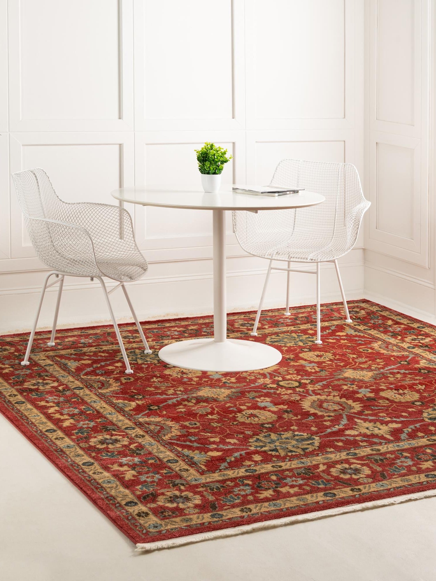 Red 8' x 8' Edinburgh Square Area Rug 100% Polypropylene Easy Clean With Cotton Backing Traditional Classic Design Carpet for Living, Dining Room, Office