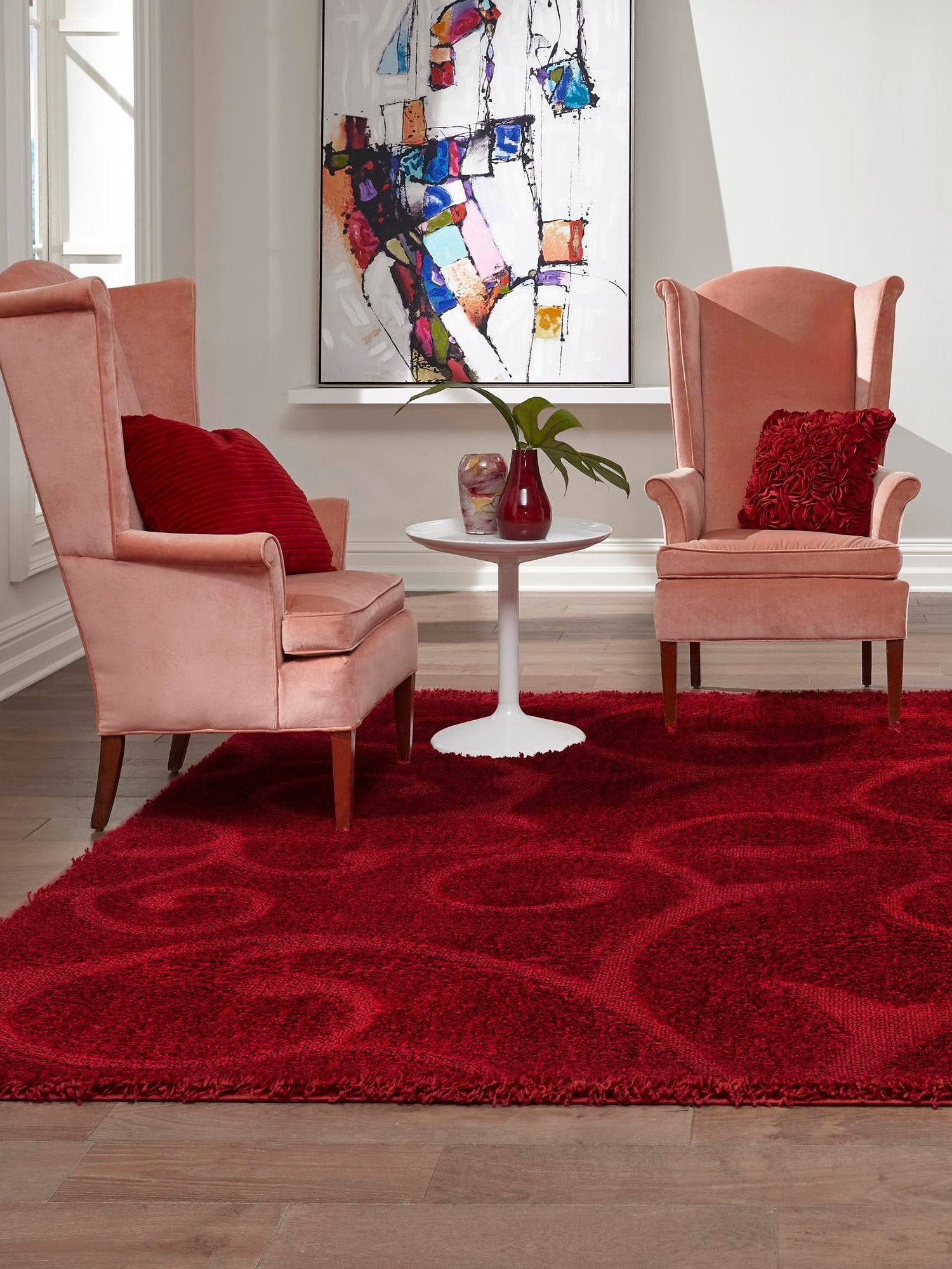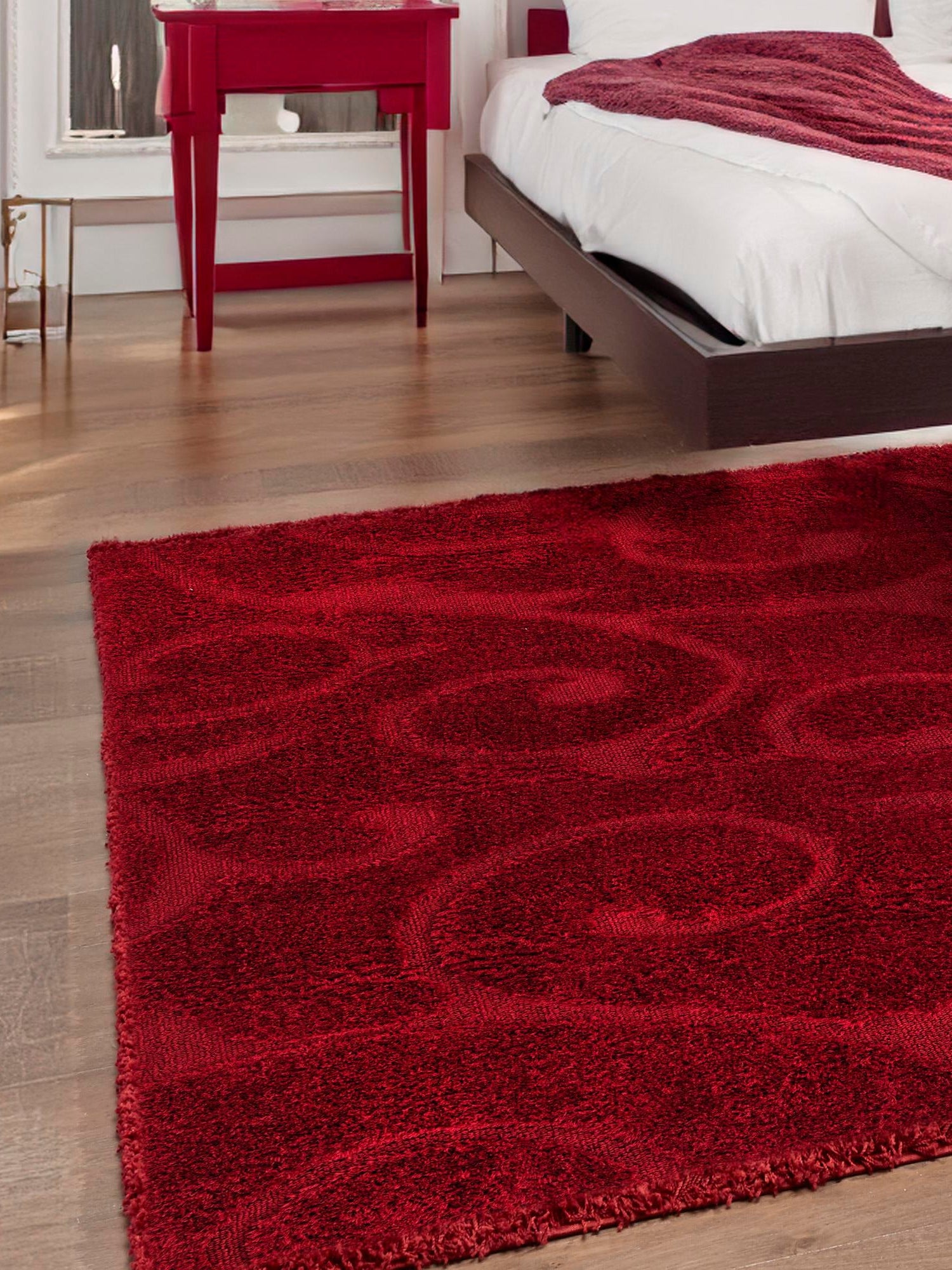 - Vibrant Color: The bold red hue of this rug brings a pop of color to your home decor, enriching any space with warmth and personality. This vibrant shade not only enhances your interior's aesthetic but also complements a variety of design styles. Transform your home into an inviting oasis with this eye-catching rug.