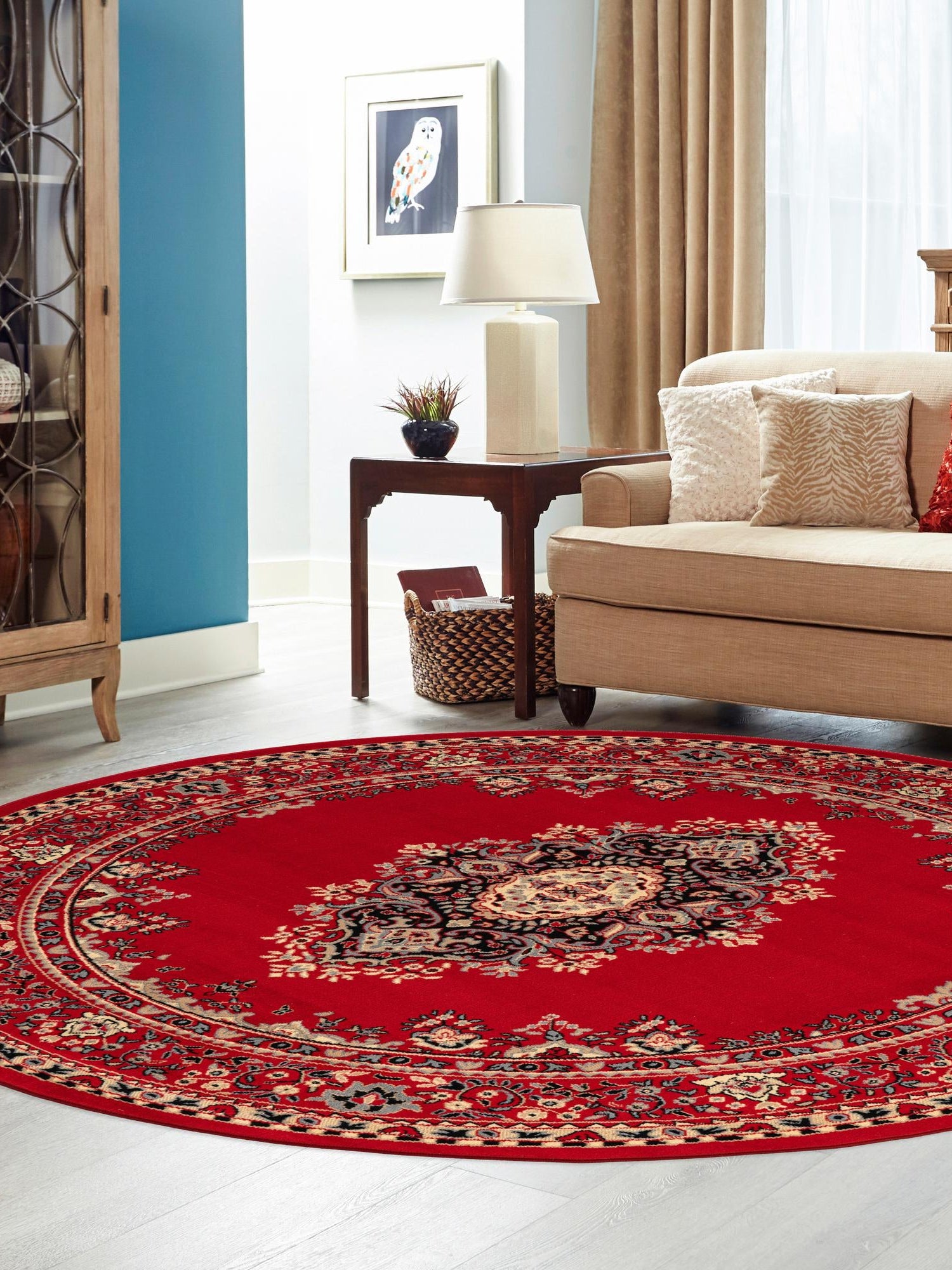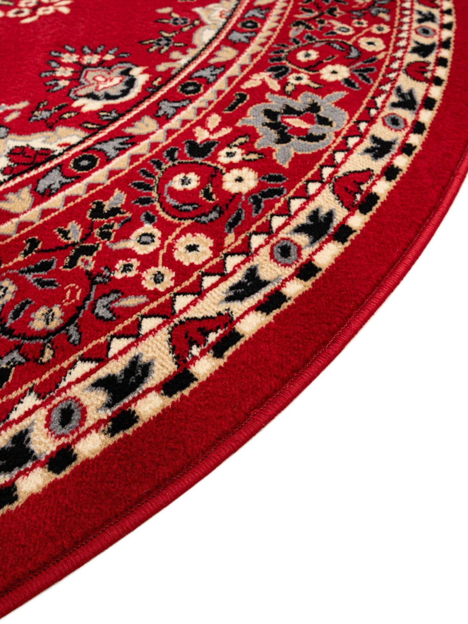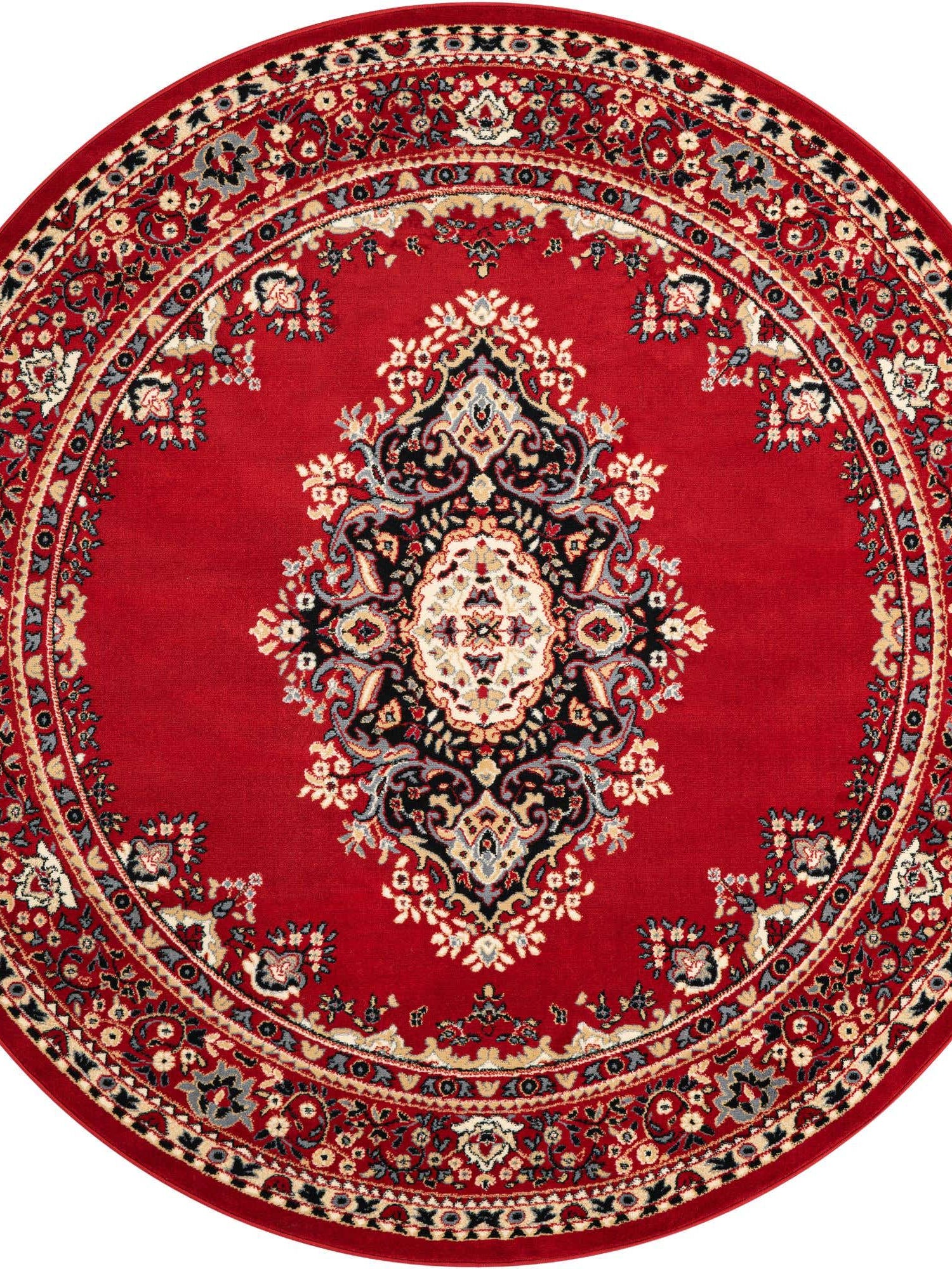 Red 7' 10 x 7' 10 Reza Round Area Rug 100% Polypropylene Easy Clean Traditional Motif Classic Carpet for Home Interiors