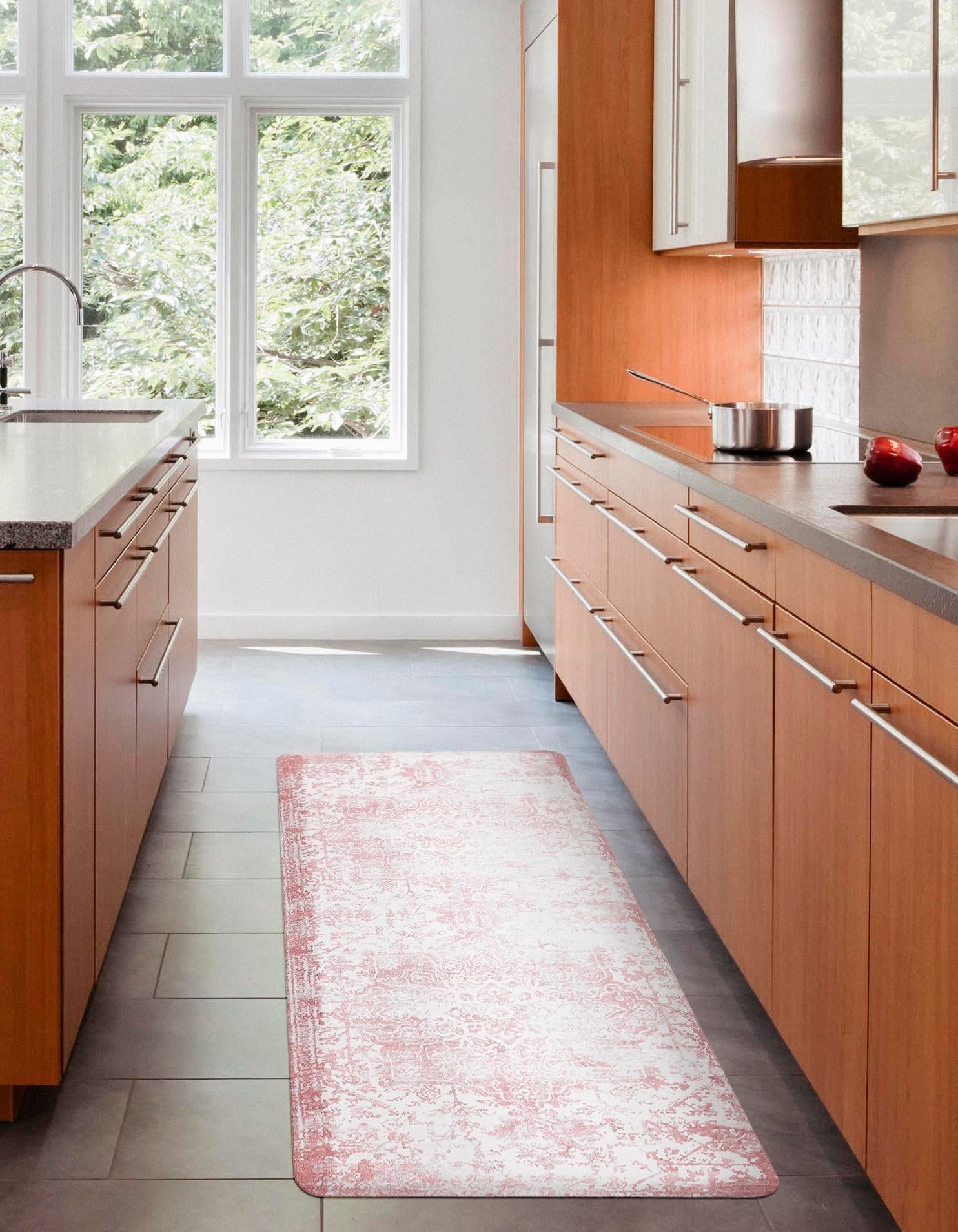 Anti-Fatigue Rose Pink 2' x 5' Comfort Standing Mat for Kitchen, Bath, Laundry Room, Office Colorful PVC Durable Non-Slip Water Resistant Spill Proof Rug Thick Rubber