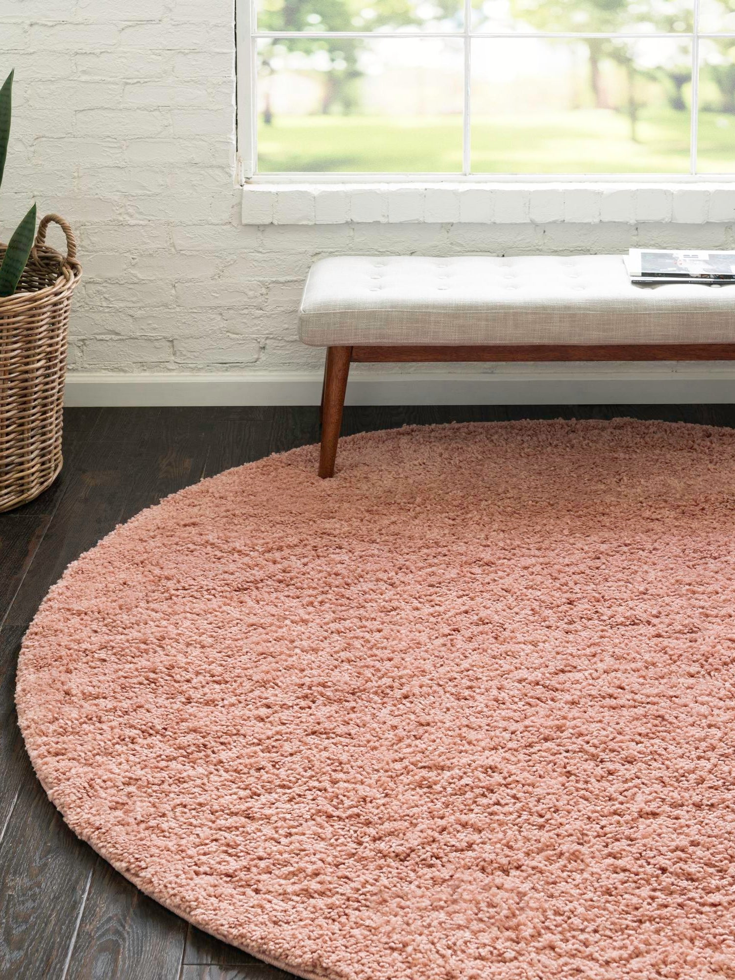 Rose Pink 6' x 6' Everyday Shag Round Area Rug Thick Soft Touch Fluffy & Plush Shaggy Pile 100% Polypropylene With Cotton Backing Durable Carpet