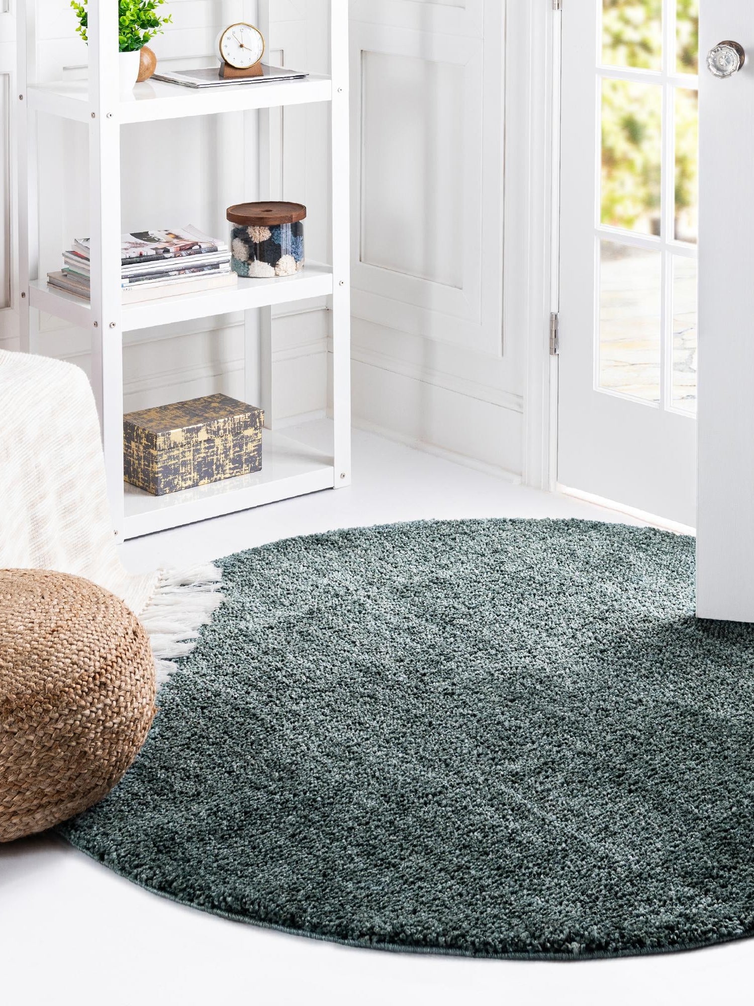 Rosemary Green 3' 3 x 3' 3 Jill Zarin Shaggy Chic Round Area Rug Thick Soft Touch Fluffy & Plush Shaggy Pile 100% Polyester (Space-Dyed Yarn) With Jute Backing Carpet