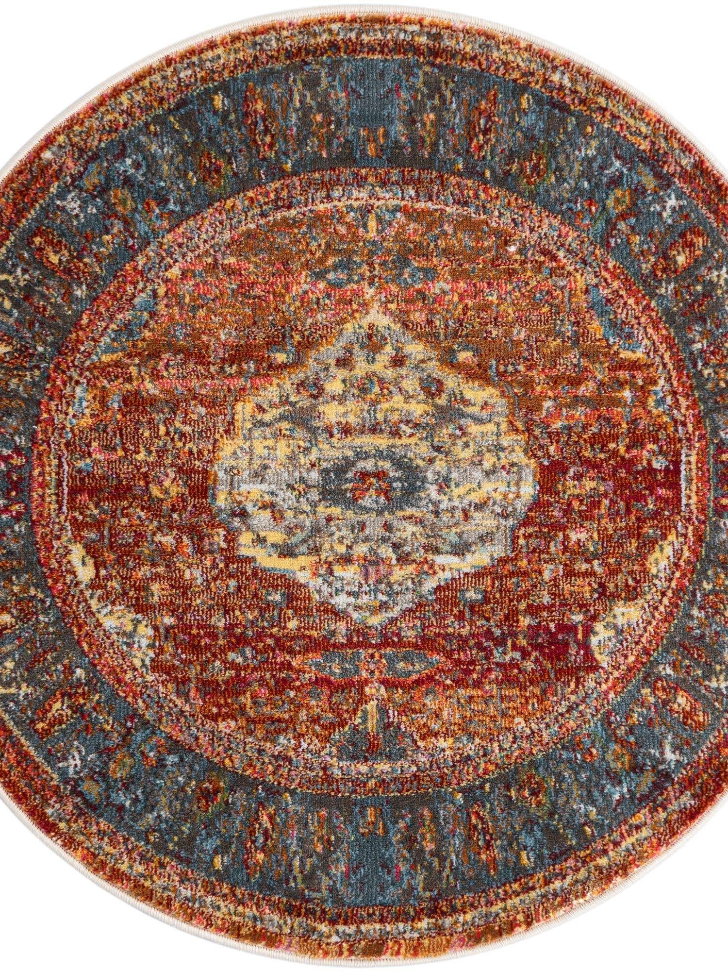 Washable Multicolor 5' x 5' Timeless Round Area Rug Easy to Clean Stain Resistant & Durable