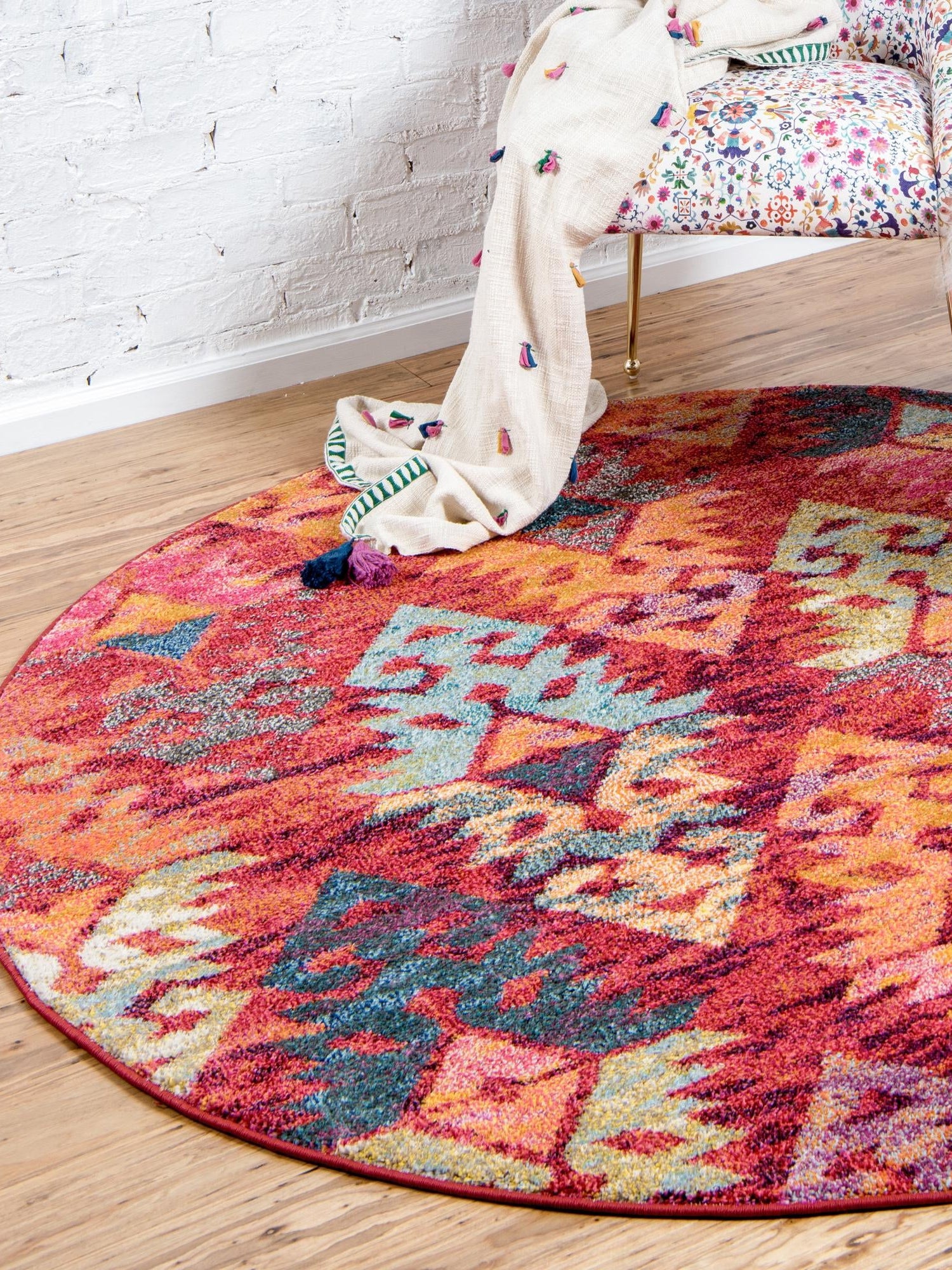Washable Multicolor 5' x 5' Timeless Round Area Rug Easy to Clean Stain Resistant & Durable
