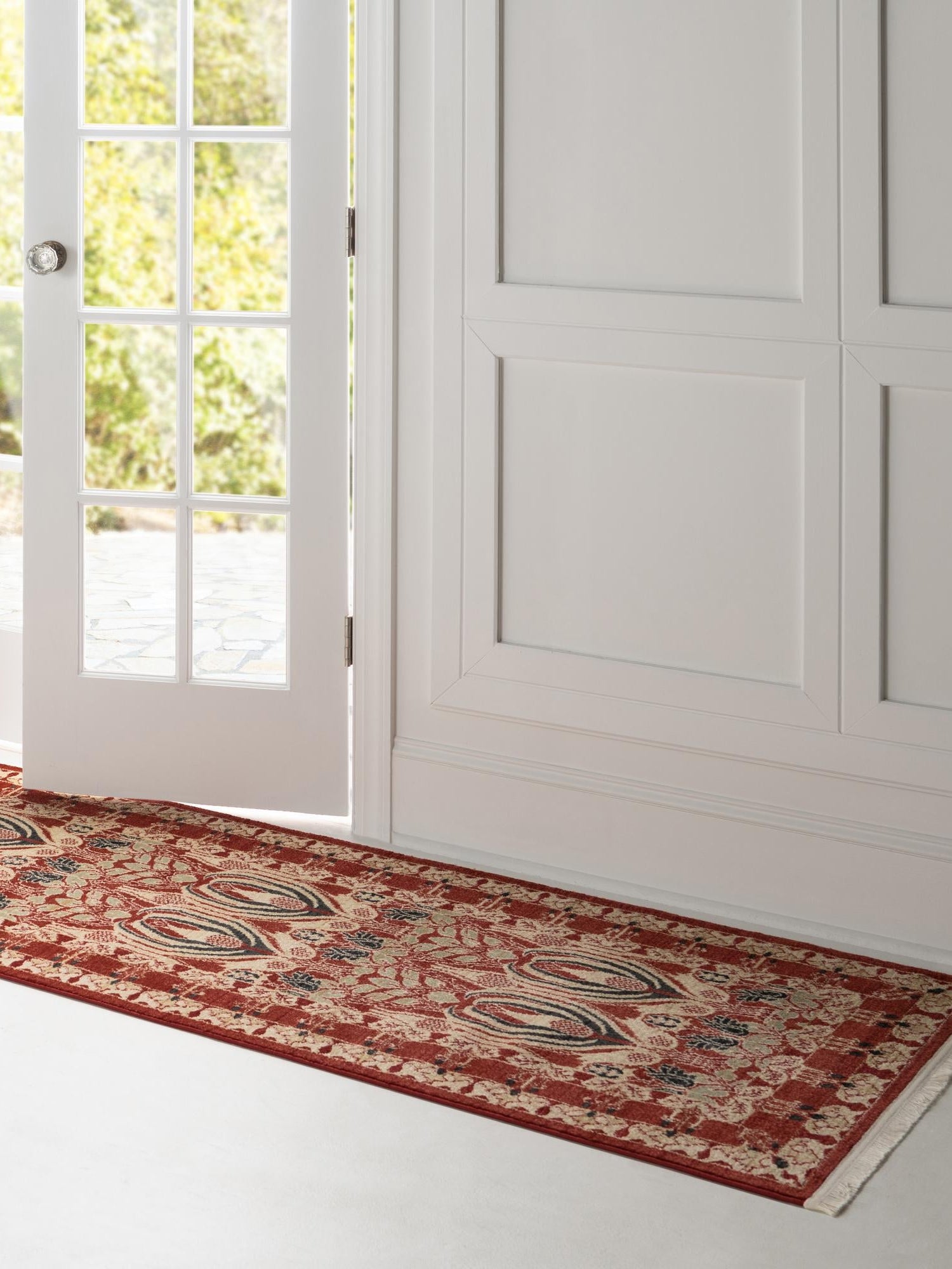 Washable Vintage Red 2' x 5' 1 Timeless Runner Area Rug Easy to Clean Stain Resistant & Durable