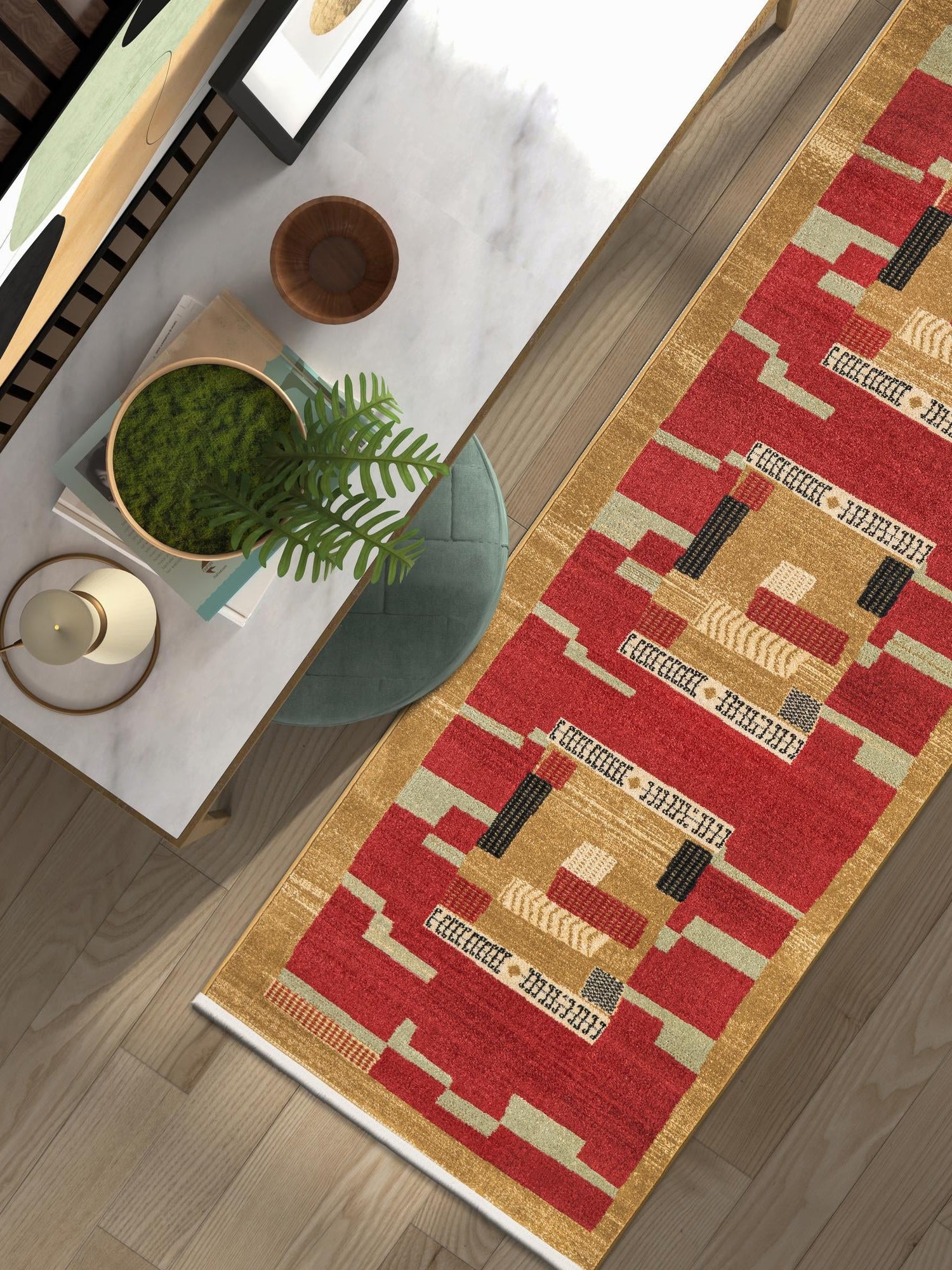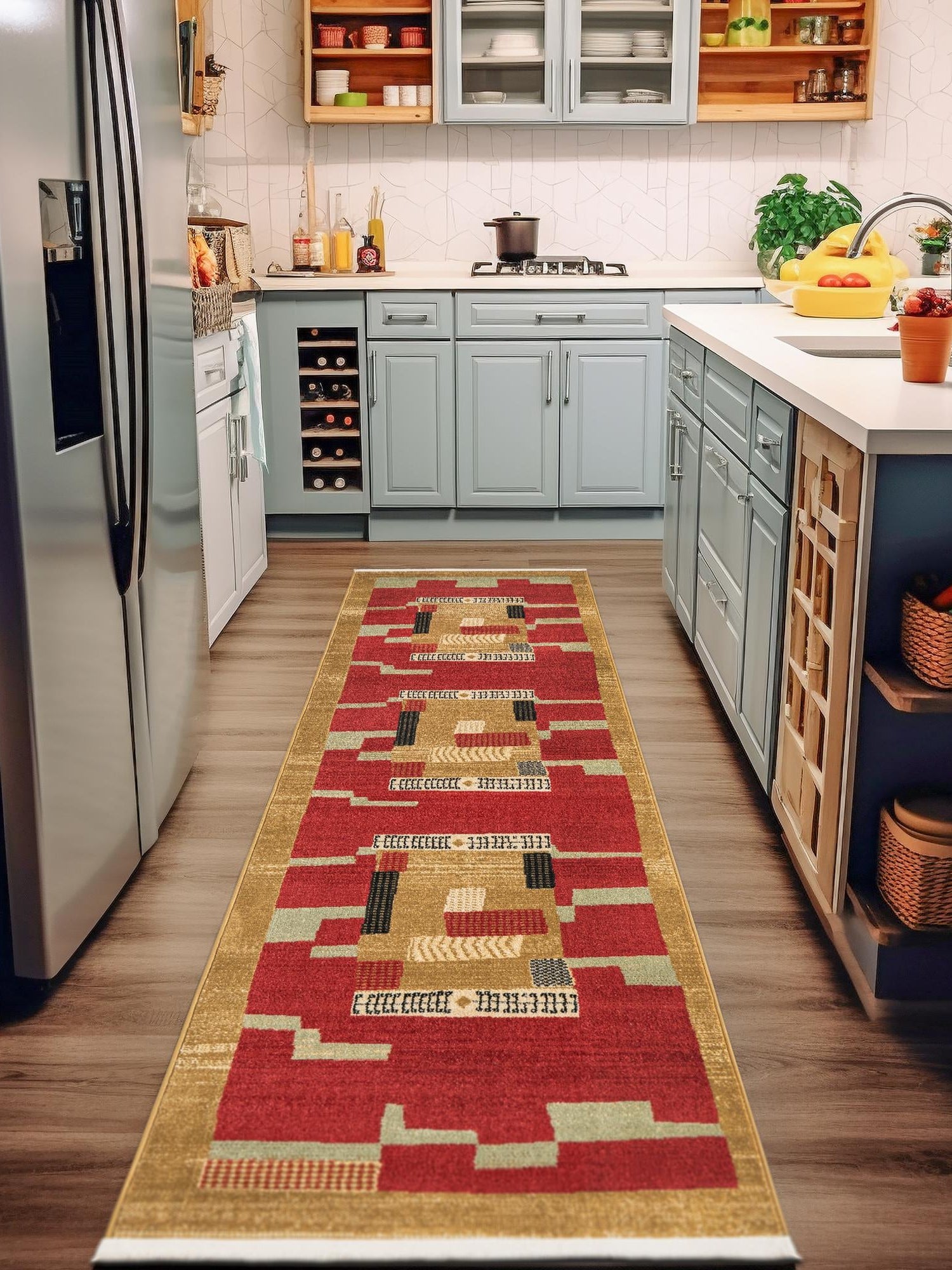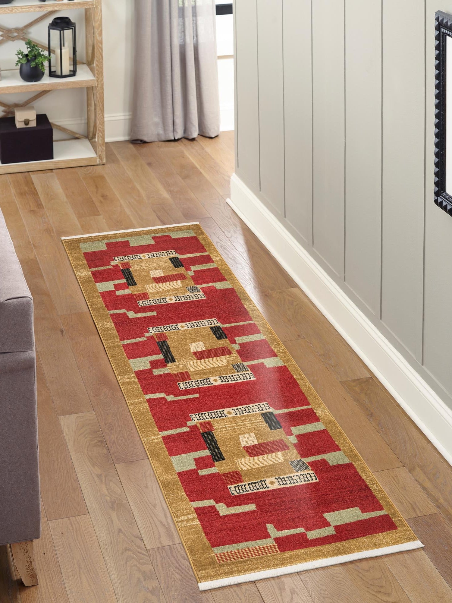 Washable Vintage Red 2' x 5' 1 Timeless Runner Area Rug Easy to Clean Stain Resistant & Durable