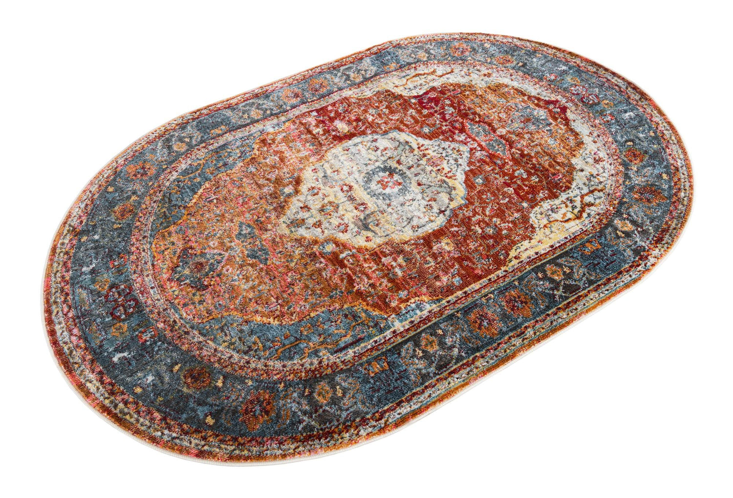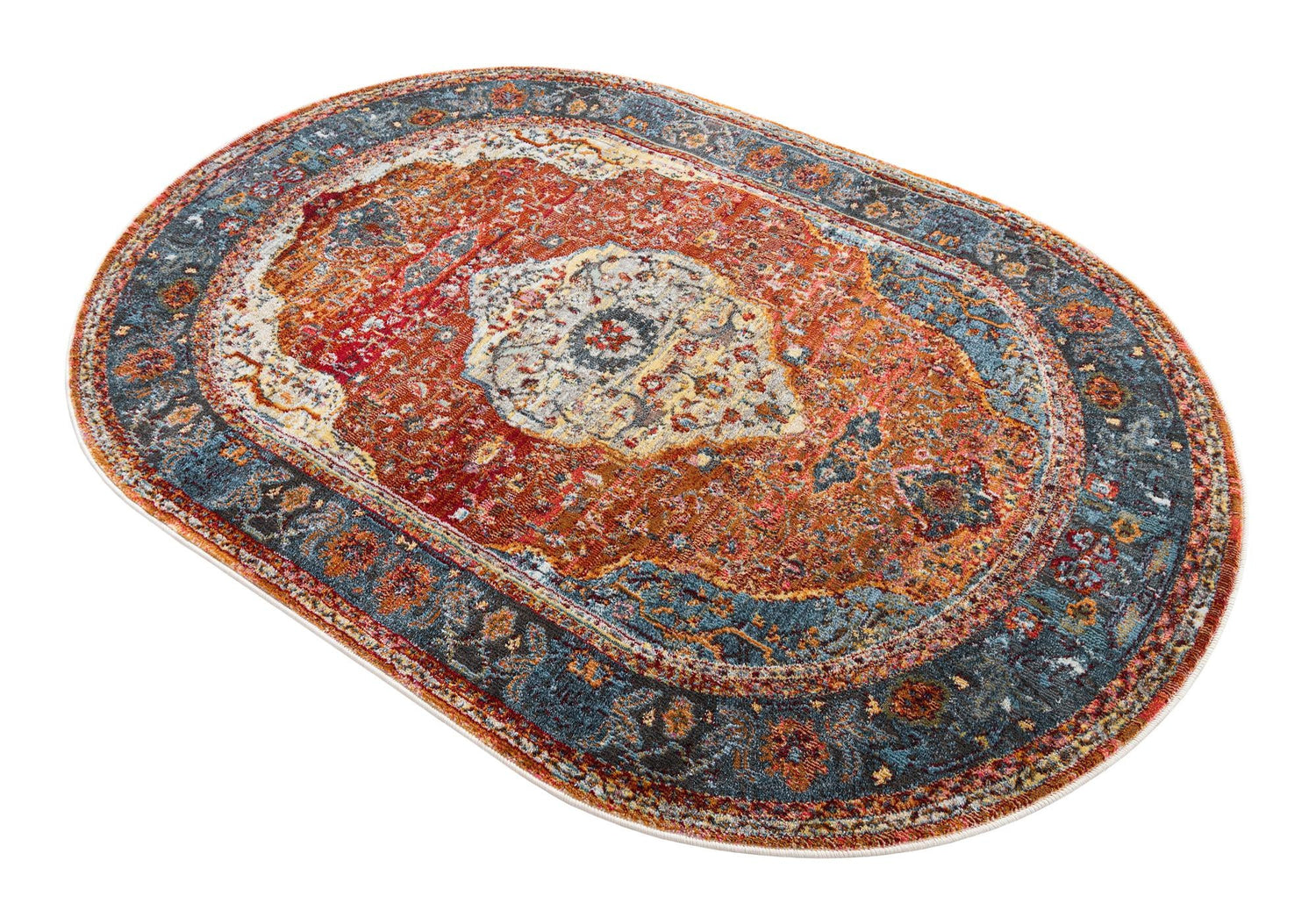Rust Red 4' 1 x 6' 1 Baracoa Oval Area Rug 100% Polypropylene Distressed Vintage Living Dining Room Office Traditional Carpet