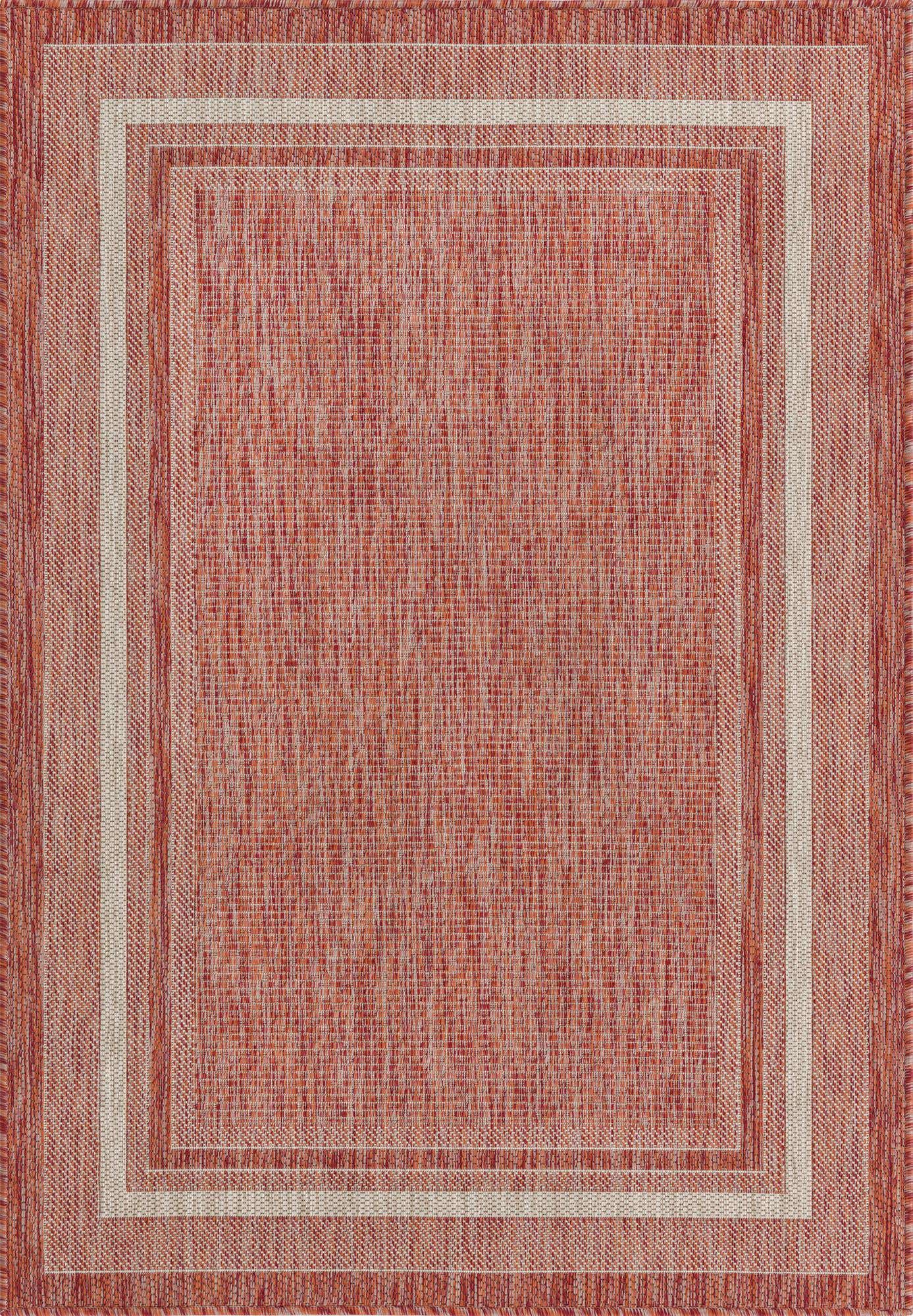 Rust Red 4' 1 x 6' 1 Outdoor Border Rectangle Area Rug Weather Resistant for Patio, Deck, Terrace, Balcony, Porch