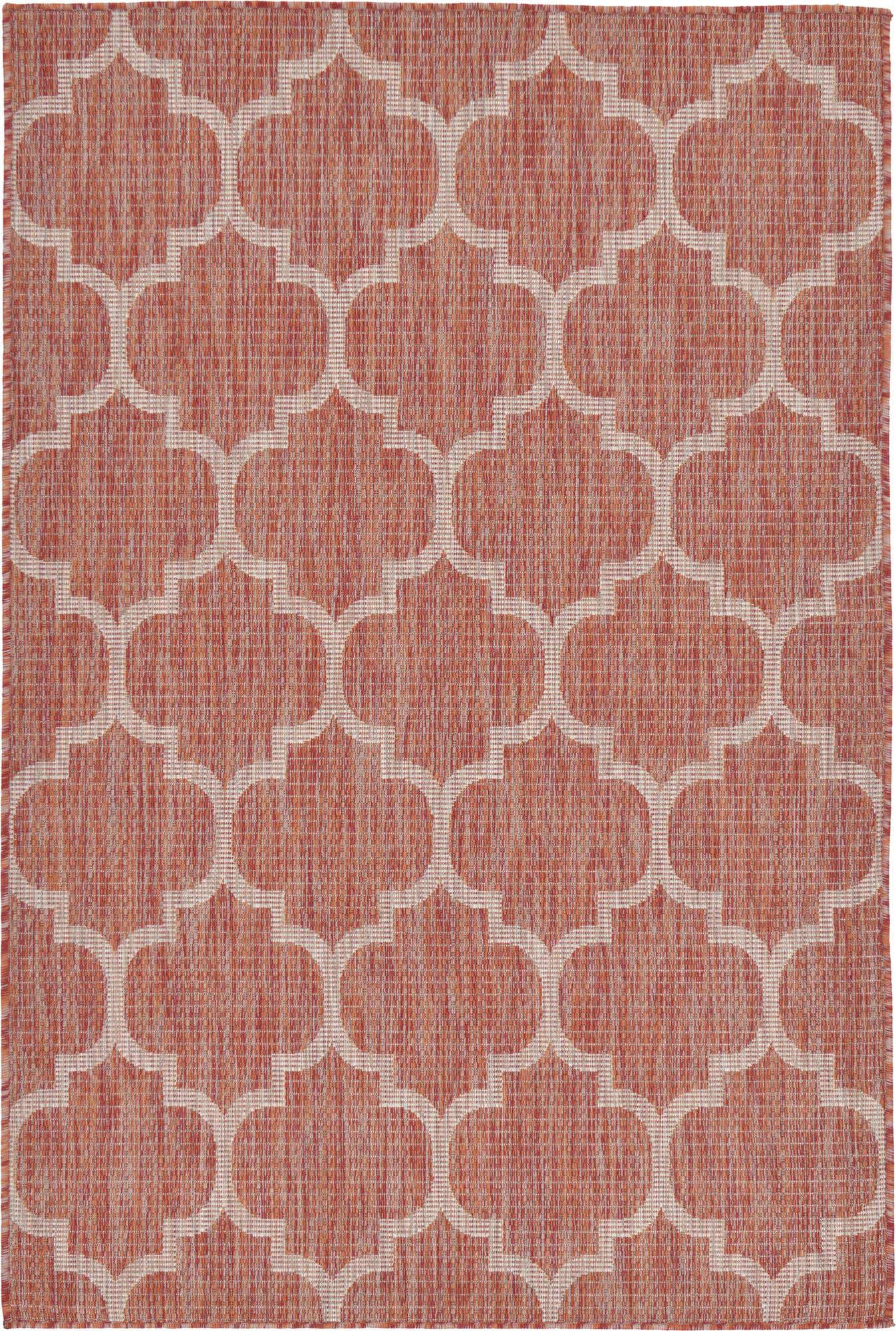 Rust Red 4' 1 x 6' 1 Outdoor Trellis Rectangle Area Rug Weather Resistant for Patio, Deck, Terrace, Balcony, Porch