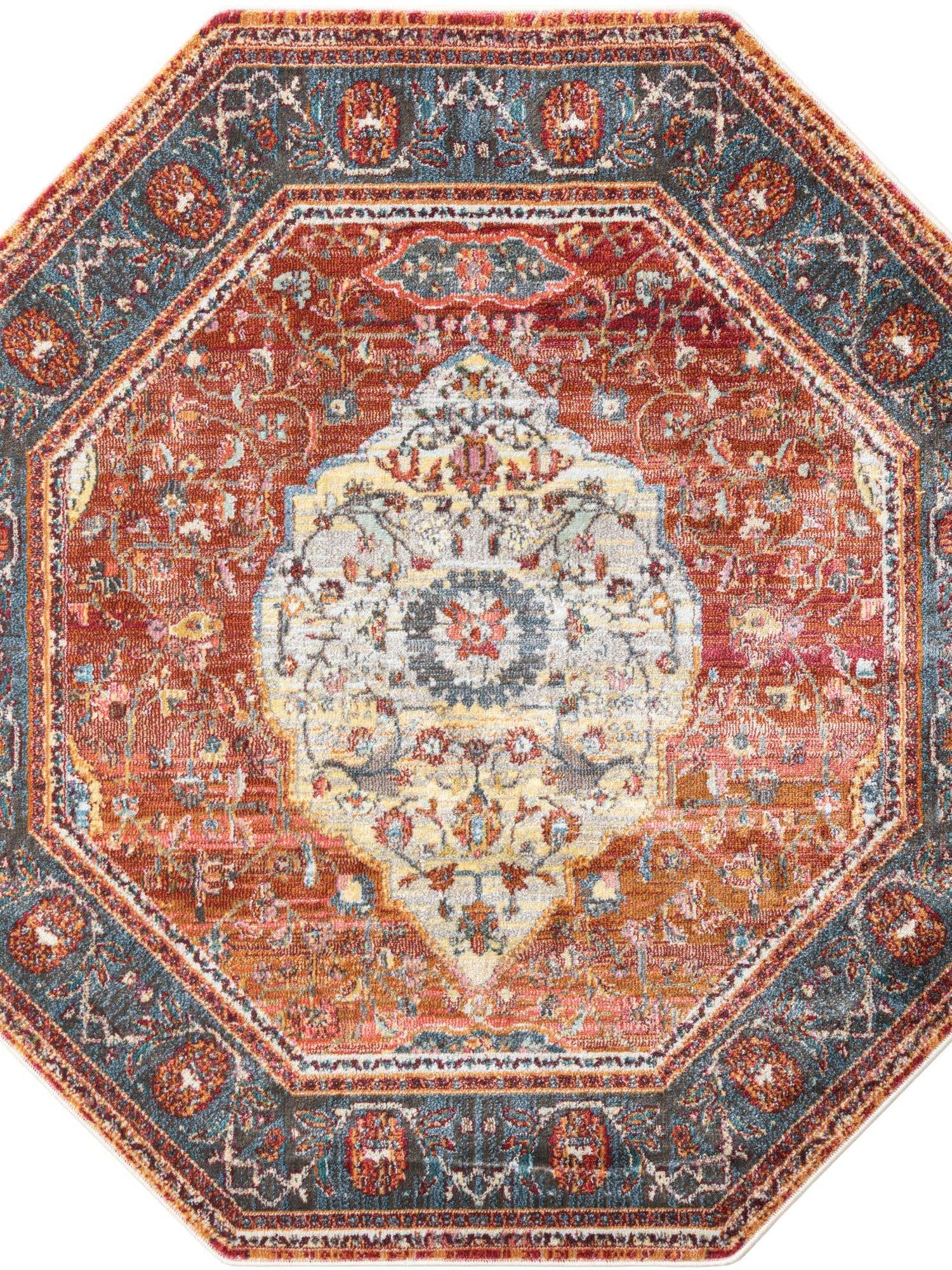 Rust Red 5' 3 x 5' 3 Baracoa Octagon Area Rug 100% Polypropylene Distressed Vintage Living Dining Room Office Traditional Carpet