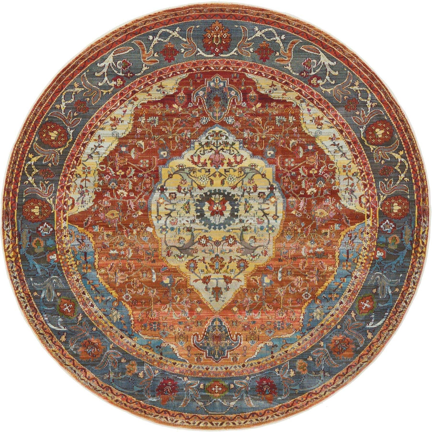 Washable Vintage Rust Red 2' x 2' Timeless Round Area Rug Easy to Clean Stain Resistant & Durable