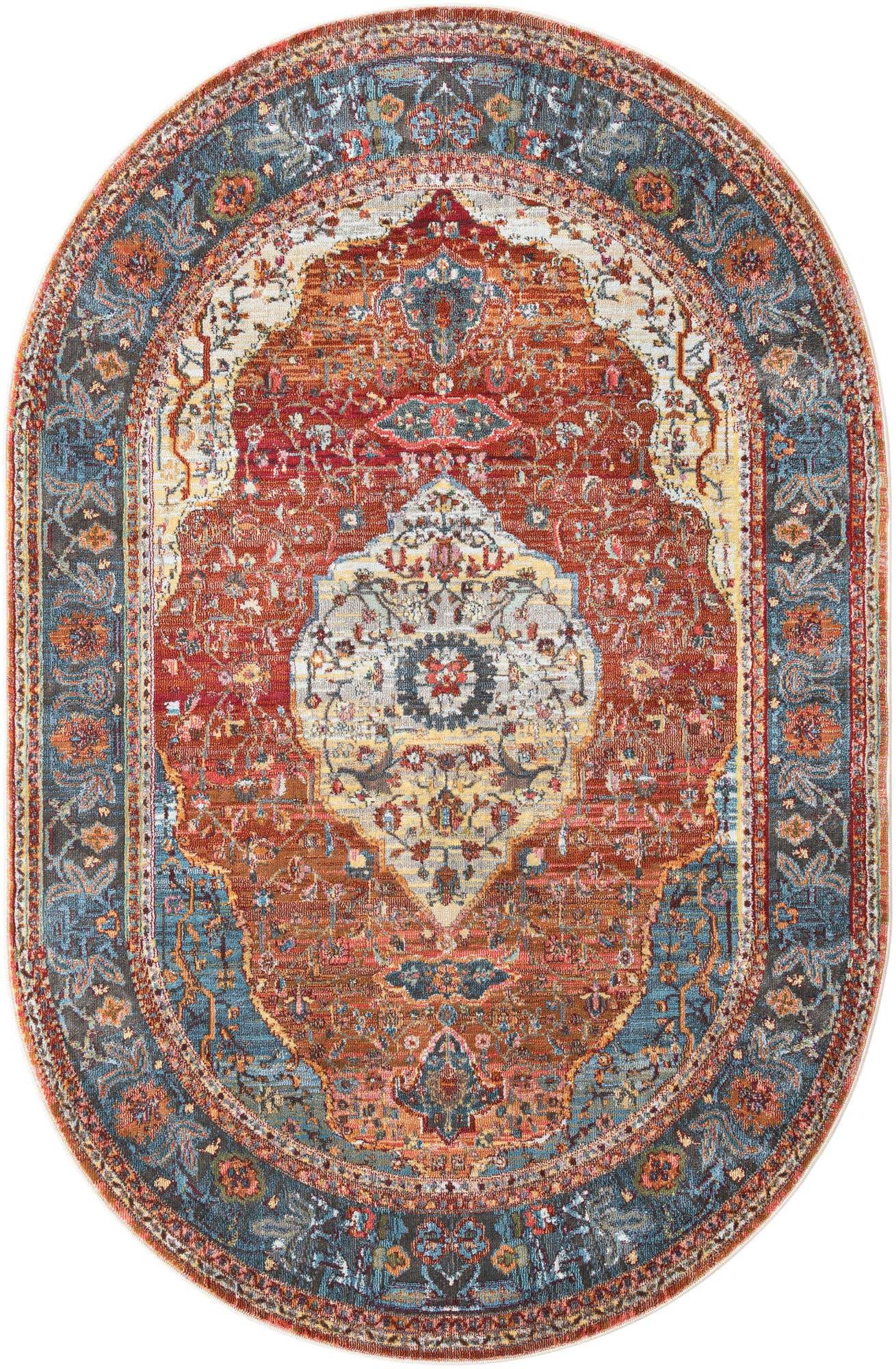 Rust Red 5' 5 x 8' Baracoa Oval Area Rug 100% Polypropylene Distressed Vintage Living Dining Room Office Traditional Carpet