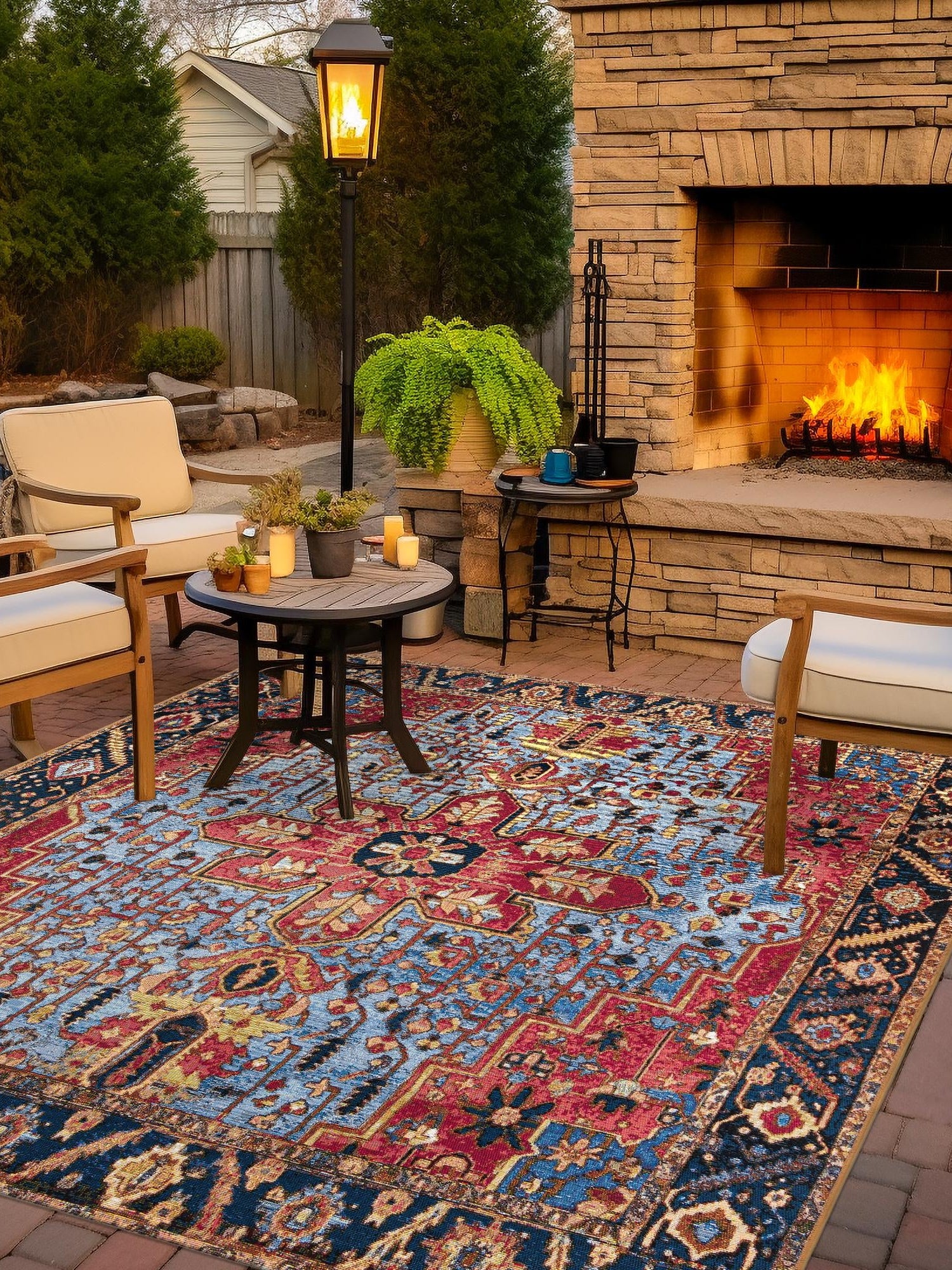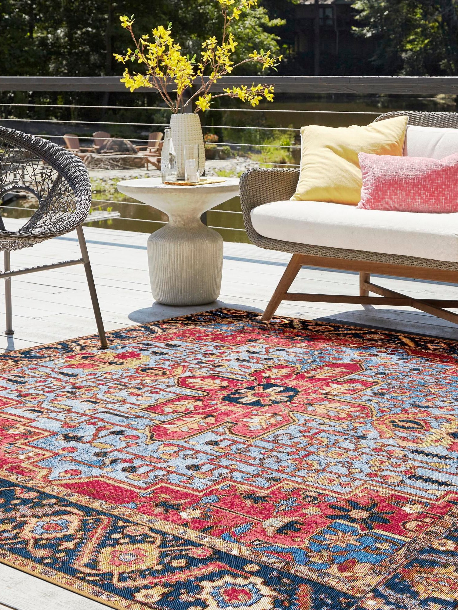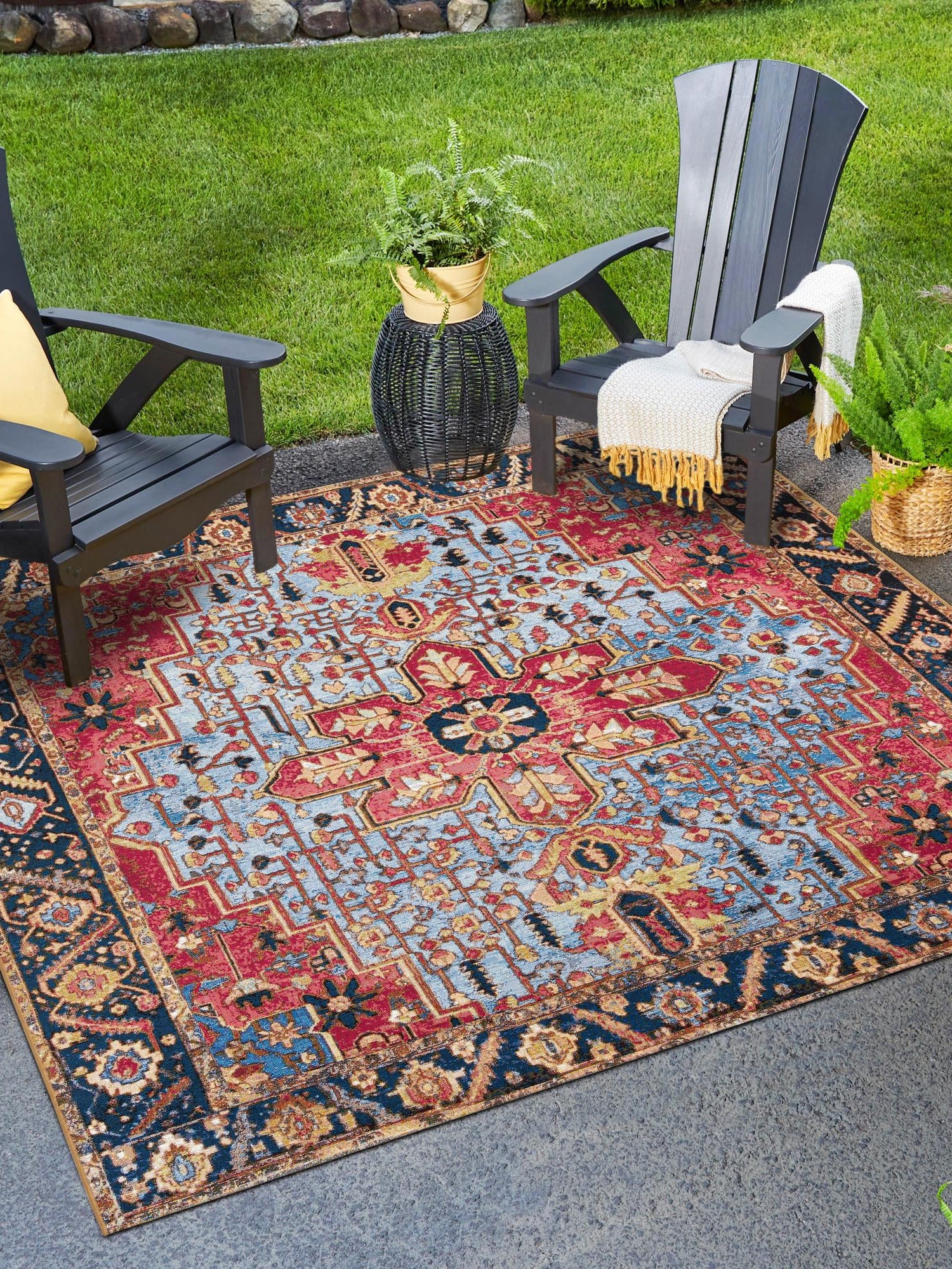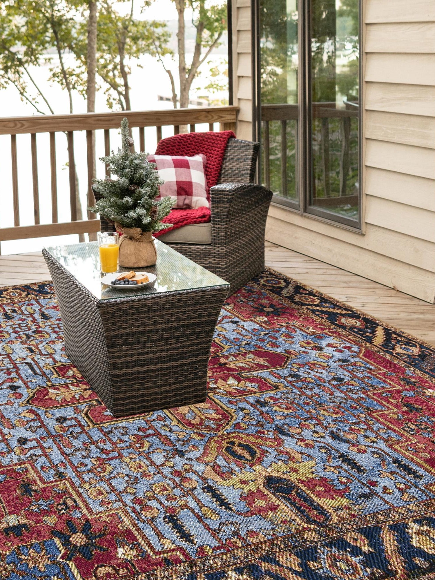 - Beautiful Color Combination: Featuring a stunning rust red and blue palette, this rug adds a splash of color and warmth to your outdoor decor. The traditional design is not only aesthetically pleasing but also complements a variety of outdoor themes and styles. Transform your outdoor area into a welcoming retreat with this eye-catching piece.
