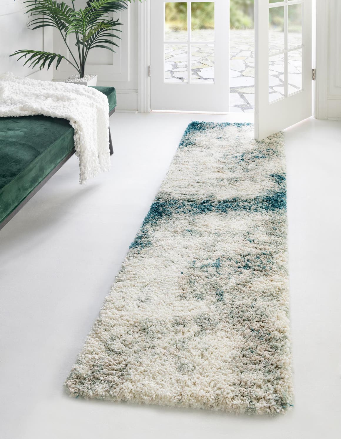 Washable Arctic Aqua Blue 2' 2 x 6' Medina Runner Area Rug Easy to Clean Stain Resistant & Durable