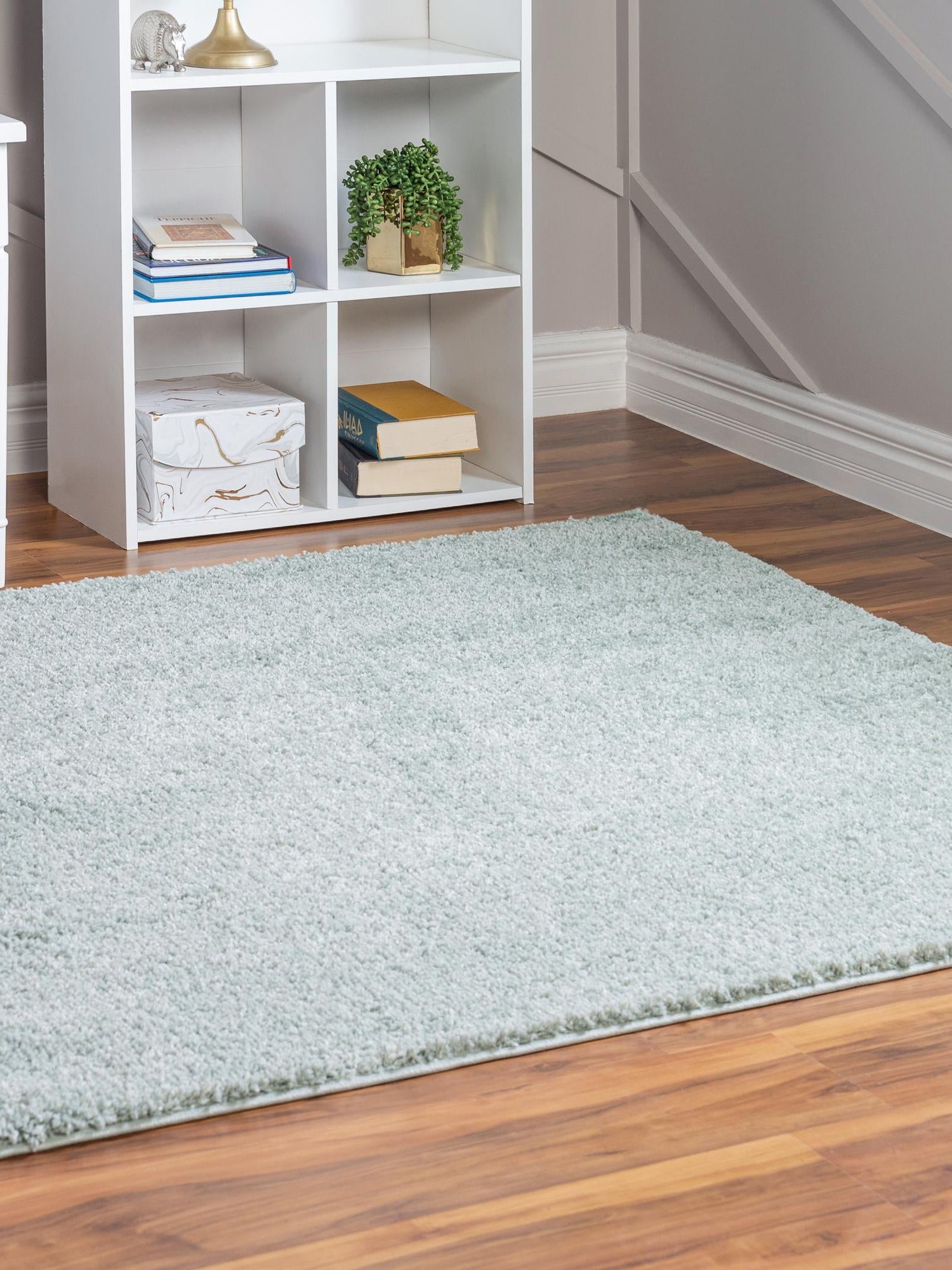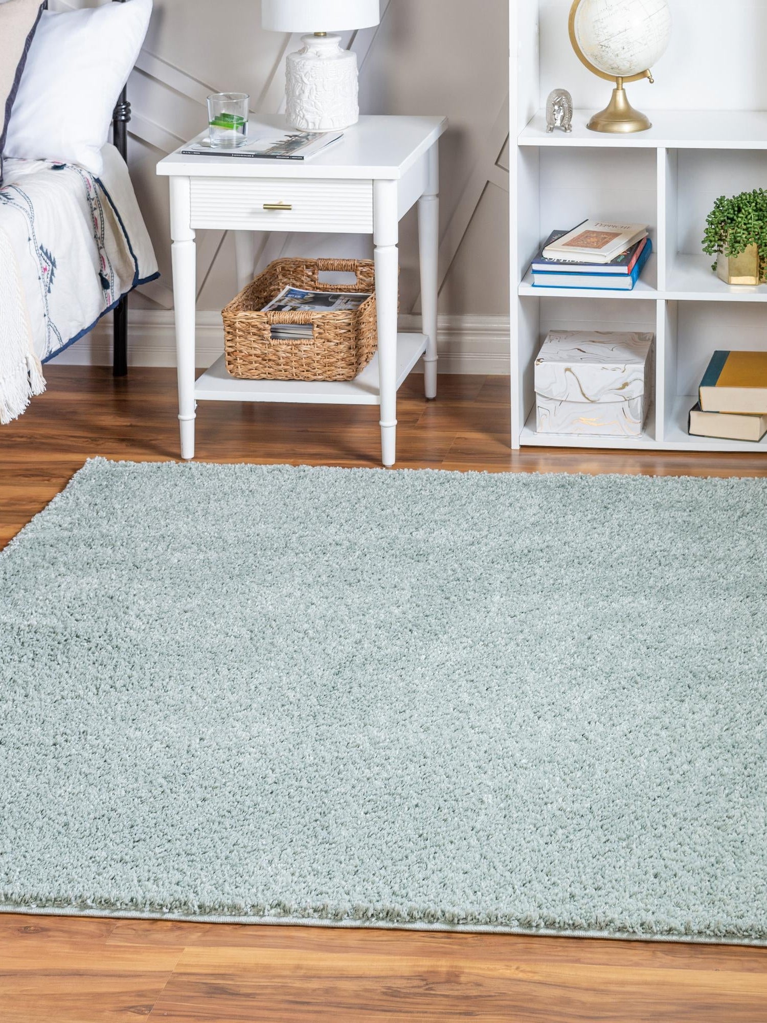 Sage Green 8' x 8' Soft Solid Shag Square Area Rug Thick Soft Touch Fluffy & Plush Shaggy Pile