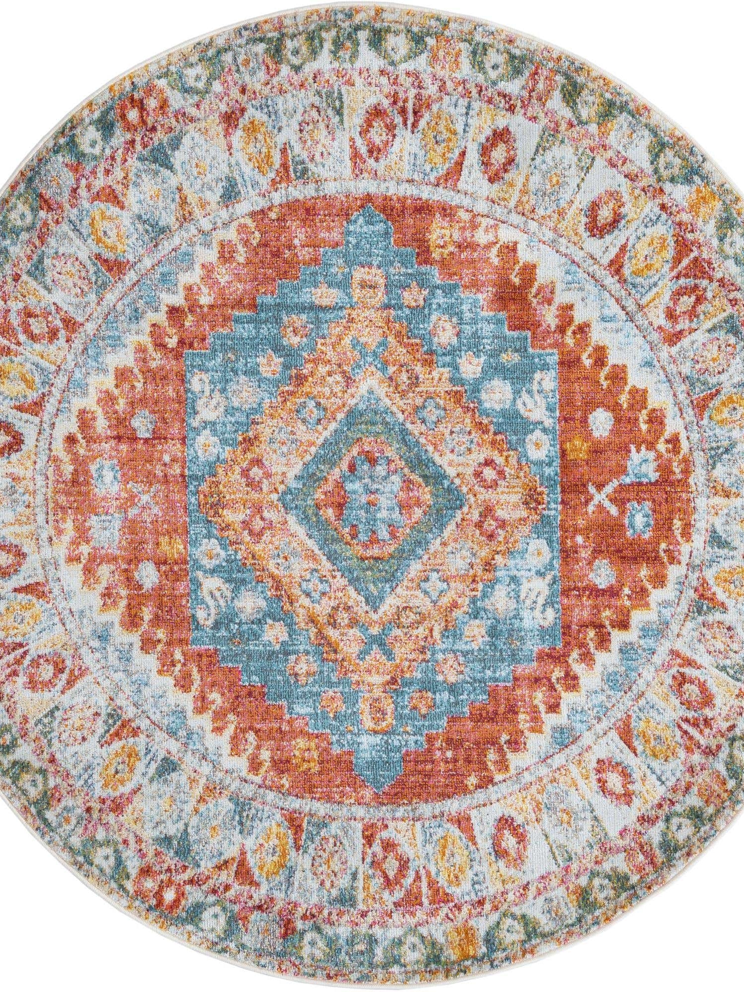 Washable Multicolor 5' x 5' Timeless Round Area Rug Easy to Clean Stain Resistant & Durable