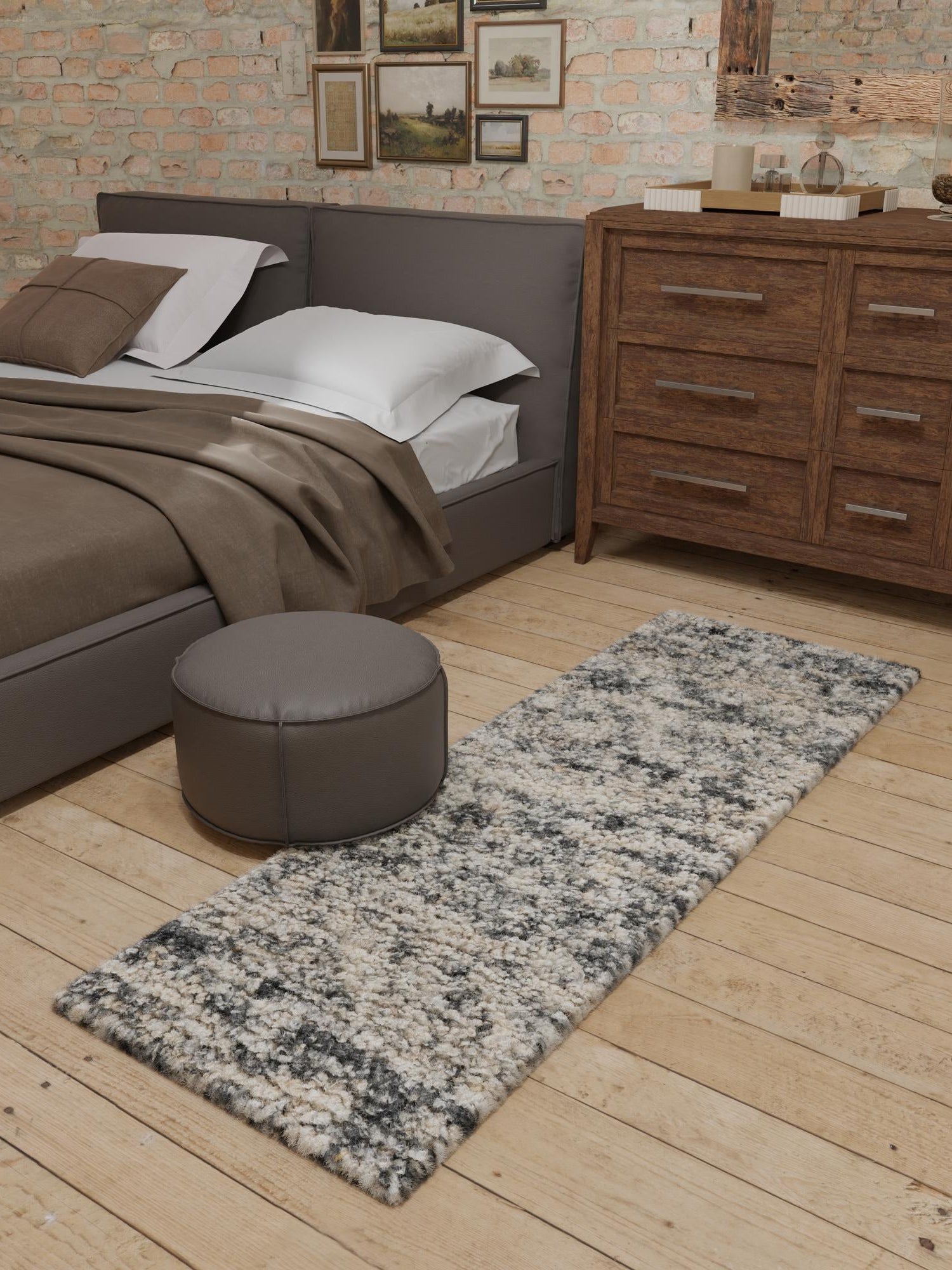 Salt and Pepper 2' x 6' 1 Haka Deluxe Shag Runner Area Rug Thick Soft Touch Fluffy & Plush Shaggy Pile Hand Woven New Zealand Wool Carpet