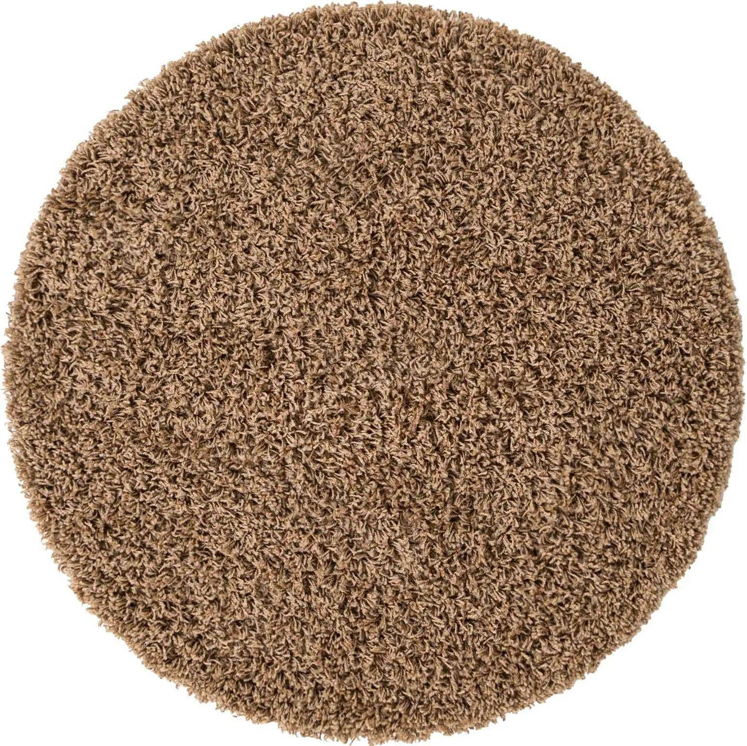 Sandy Brown 3' 1 x 3' 1 Solid Shag Round Area Rug Thick Sof...