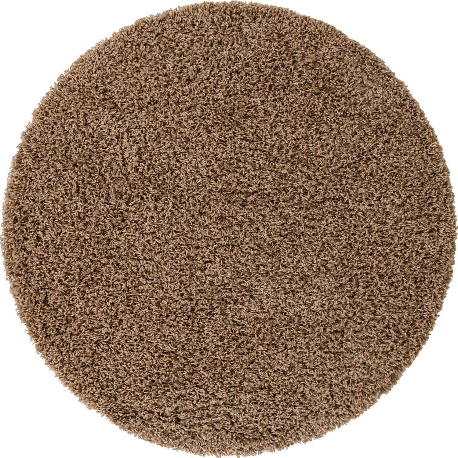 Sandy Brown 4' 1 x 4' 1 Solid Shag Round Area Rug Thick Soft Touch Fluffy & Plush Shaggy Pile