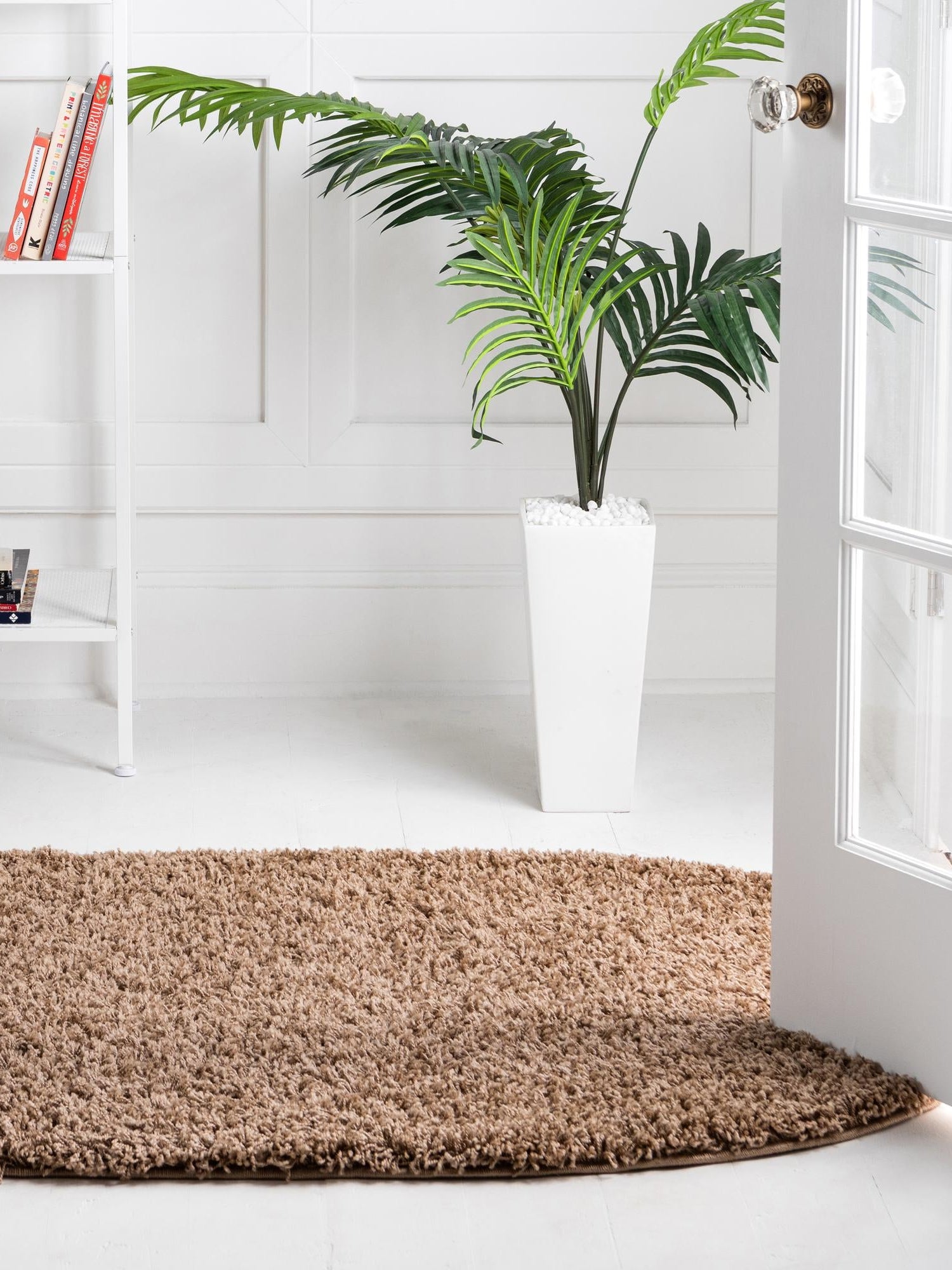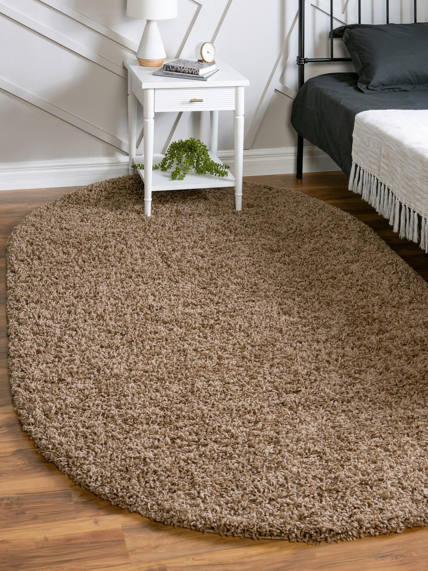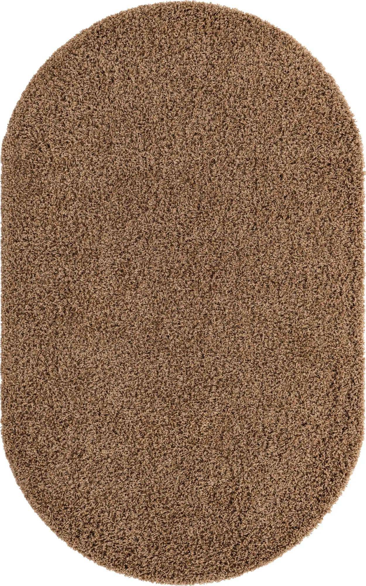 Sandy Brown 5' 3 x 8' Solid Shag Oval Area Rug Thick Soft Touch Fluffy & Plush Shaggy Pile