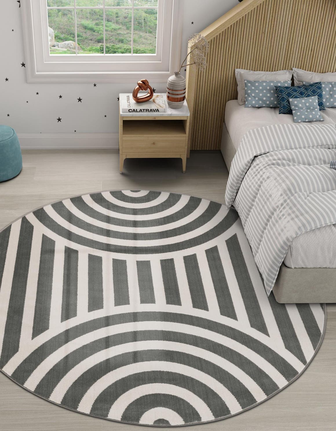 Washable Gray 2' x 2' Timeless Round Area Rug Easy to Clean Stain Resistant & Durable