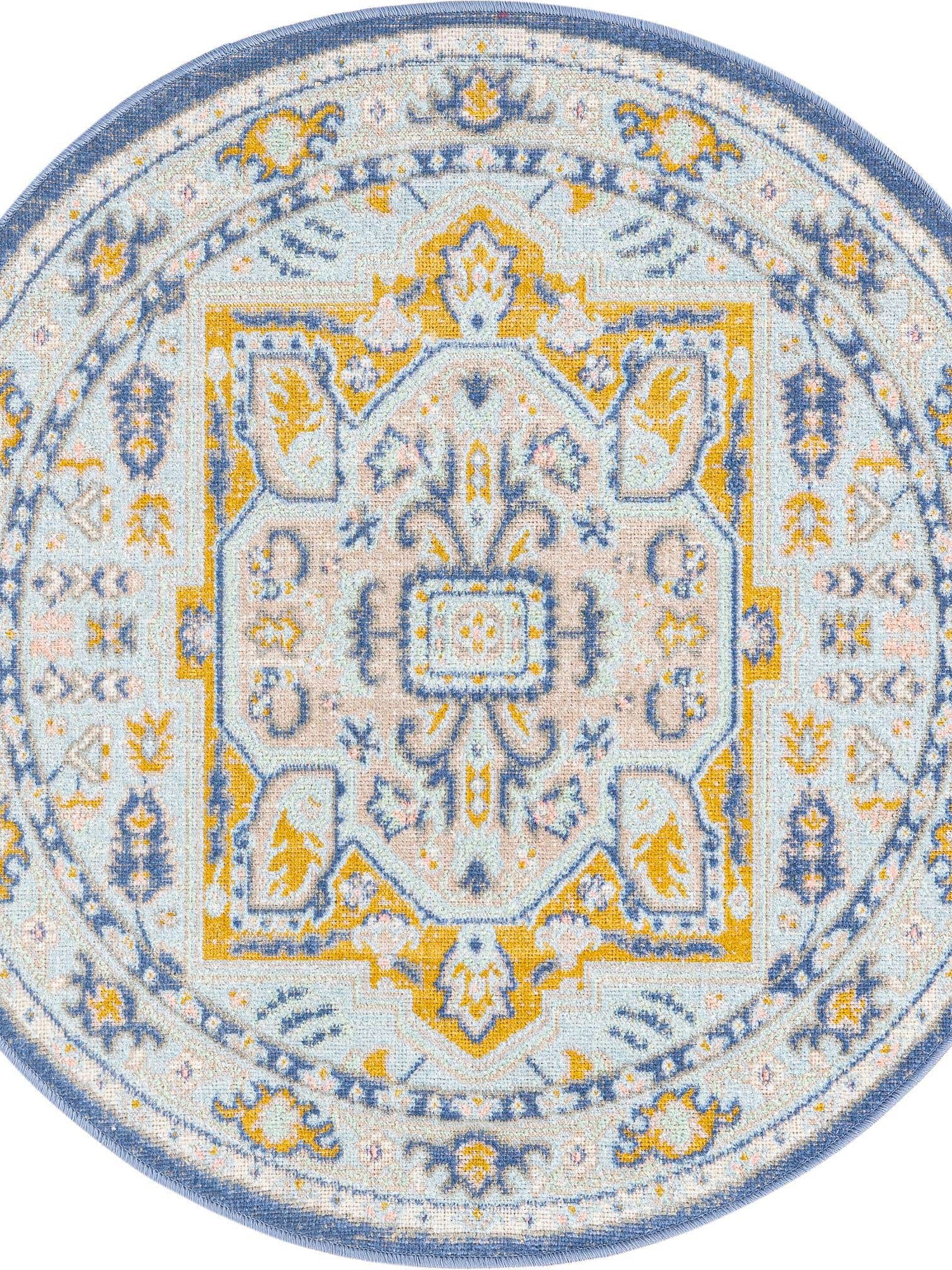 Washable Blue 5' x 5' Timeless Round Area Rug Easy to Clean Stain Resistant & Durable