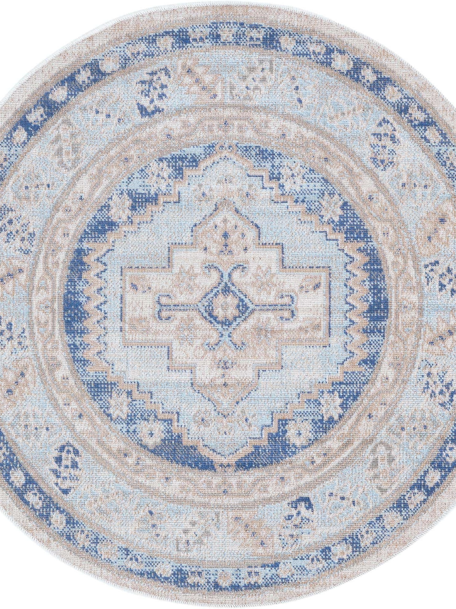 Washable Blue 5' x 5' Timeless Round Area Rug Easy to Clean Stain Resistant & Durable