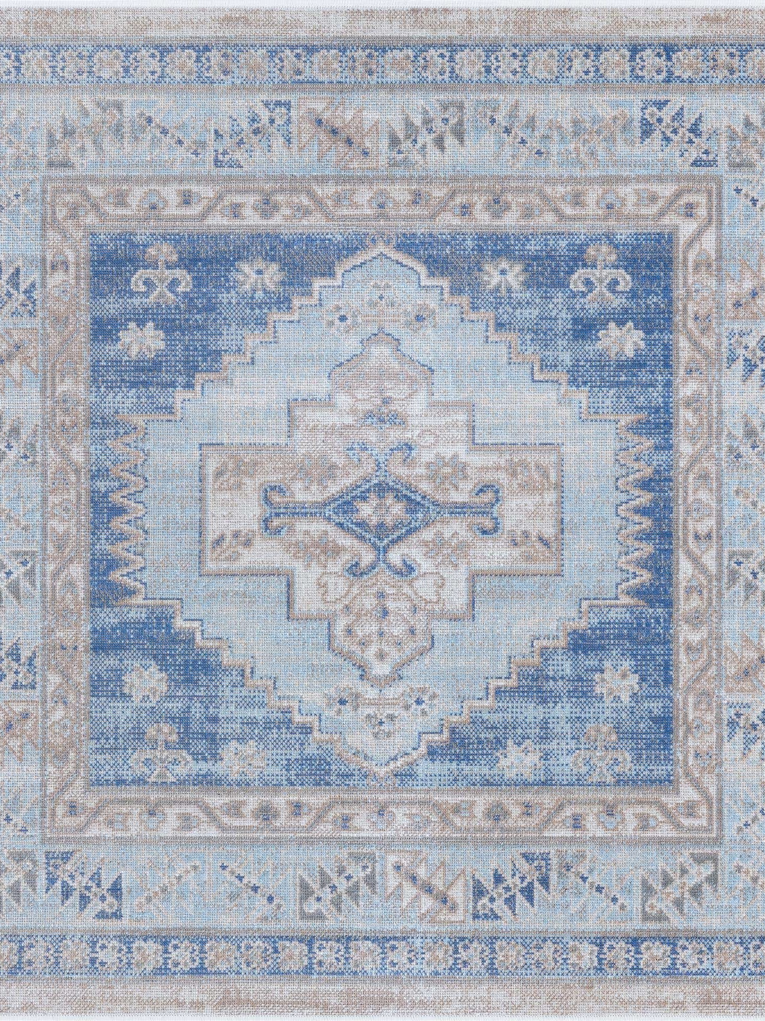 Washable Blue 5' x 5' Timeless Round Area Rug Easy to Clean Stain Resistant & Durable