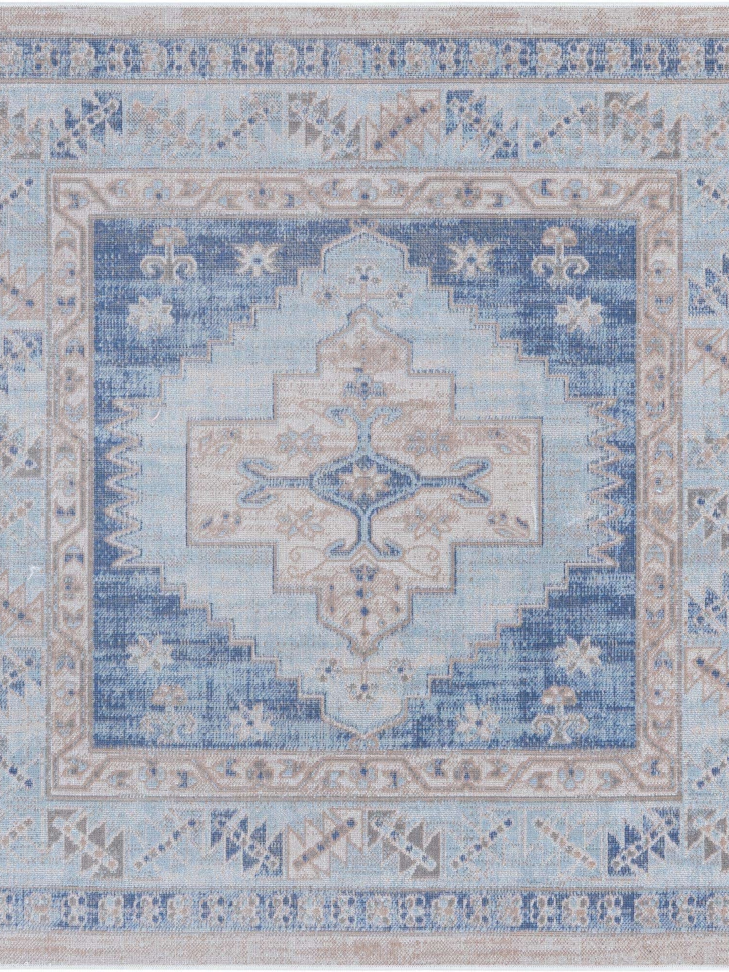 Washable Blue 5' x 5' Timeless Round Area Rug Easy to Clean Stain Resistant & Durable