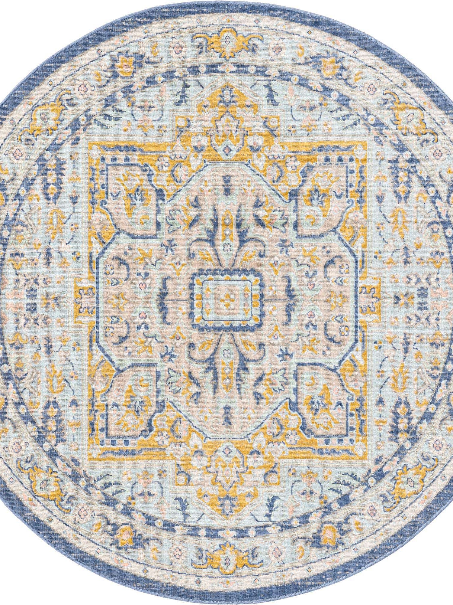 Washable Blue 5' x 5' Timeless Round Area Rug Easy to Clean Stain Resistant & Durable