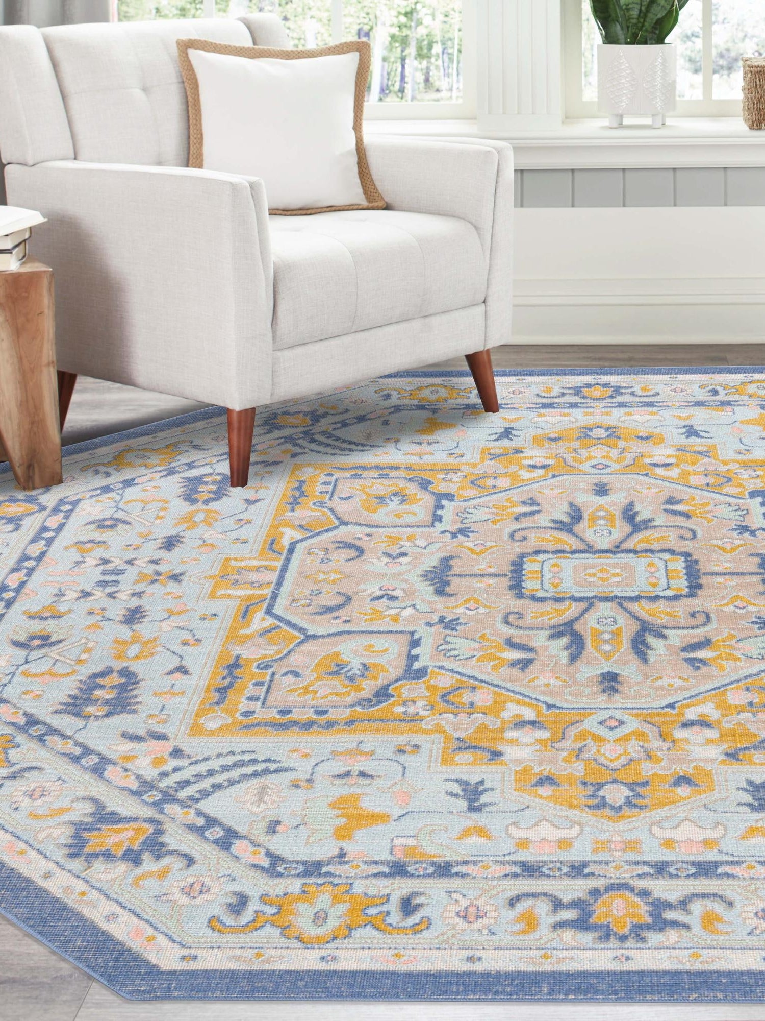 Sky blue 7' x 7' Whitney Octagon Area Rug