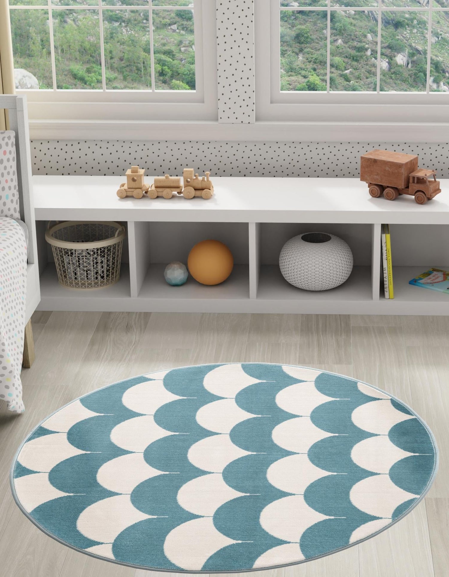 - Perfect Size for Play Areas: Measuring 7' 10" in diameter, this round rug is ideal for creating a cozy and inviting play space for kids. Its generous size allows for ample room for playtime activities, making it a wonderful addition to any children's room or playroom. The round shape encourages interaction and play among kids, promoting a fun and engaging environment.