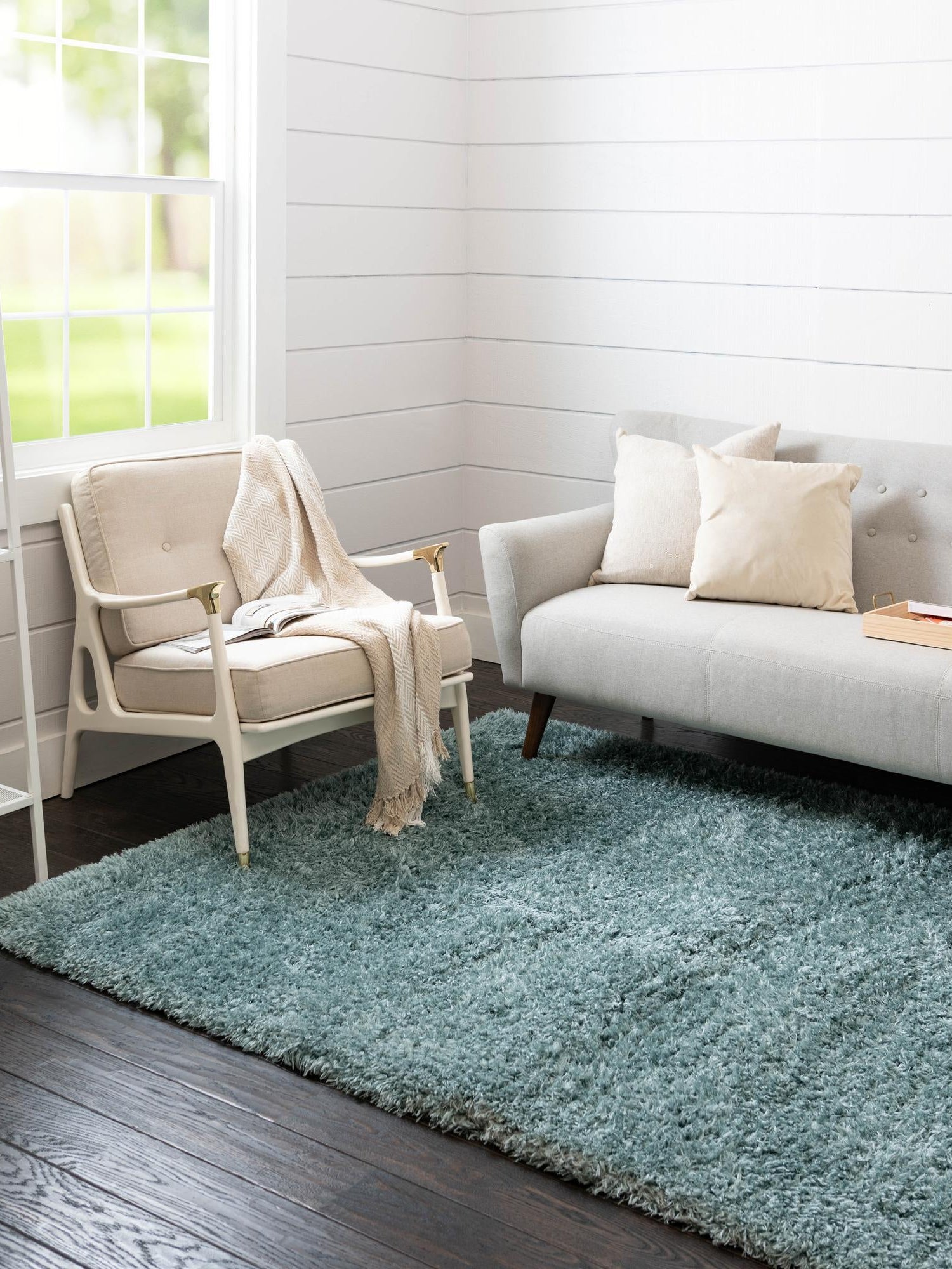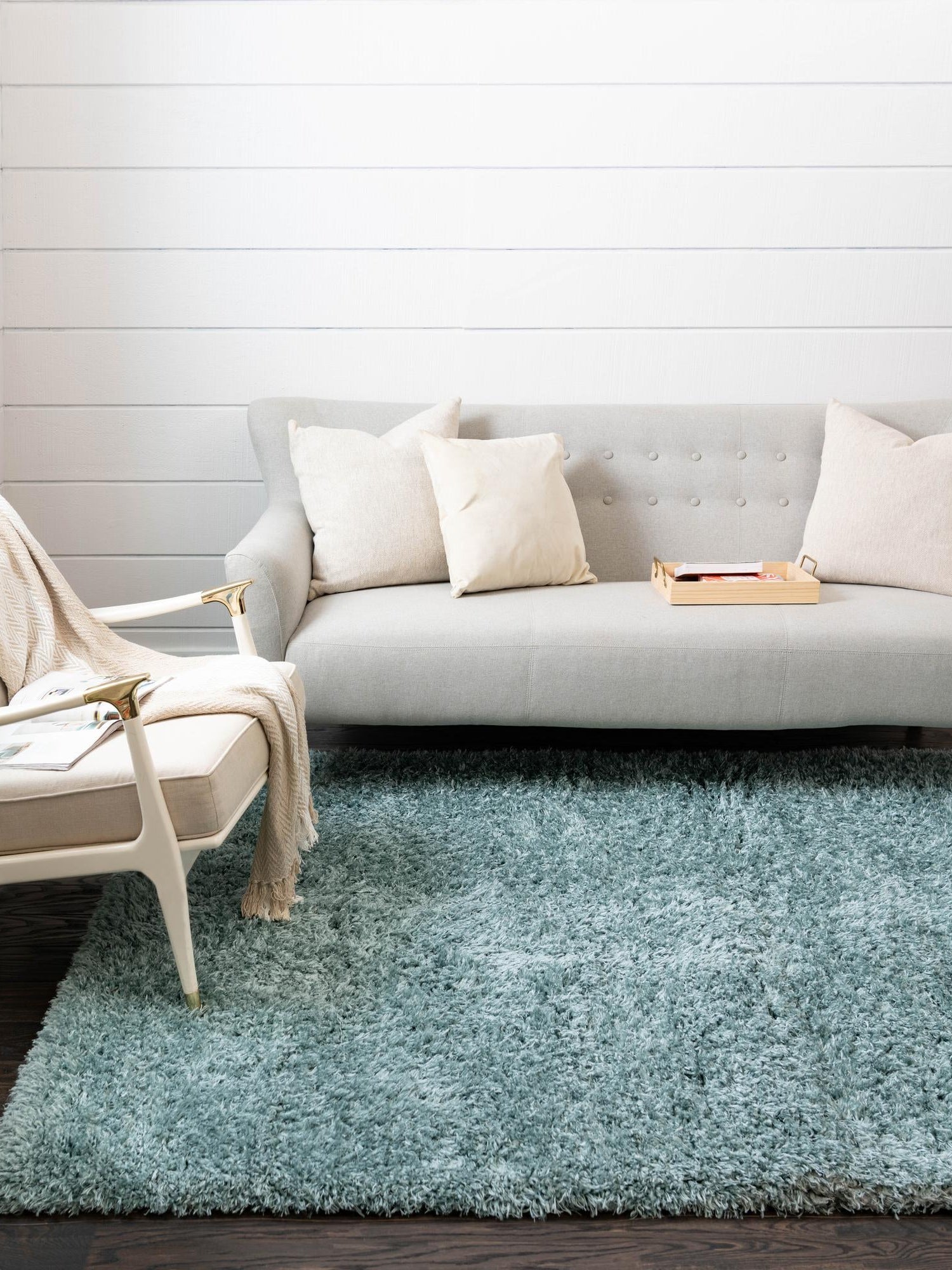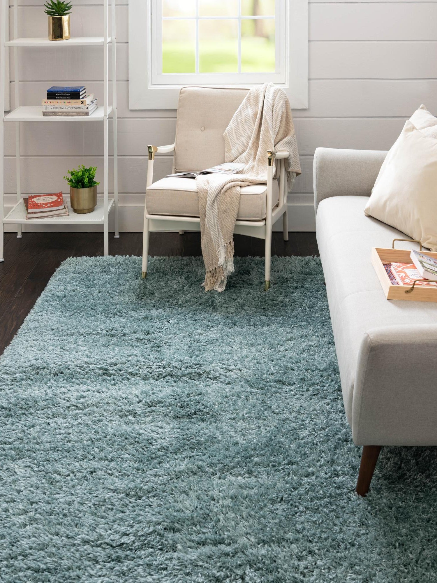 Slate Blue 7' 1 x 10' Infinity Shag Rectangle Area Rug Thick Soft Touch Fluffy & Plush Shaggy Pile 100% Polypropylene With Jute Backing Solid Color Minimalist Carpet