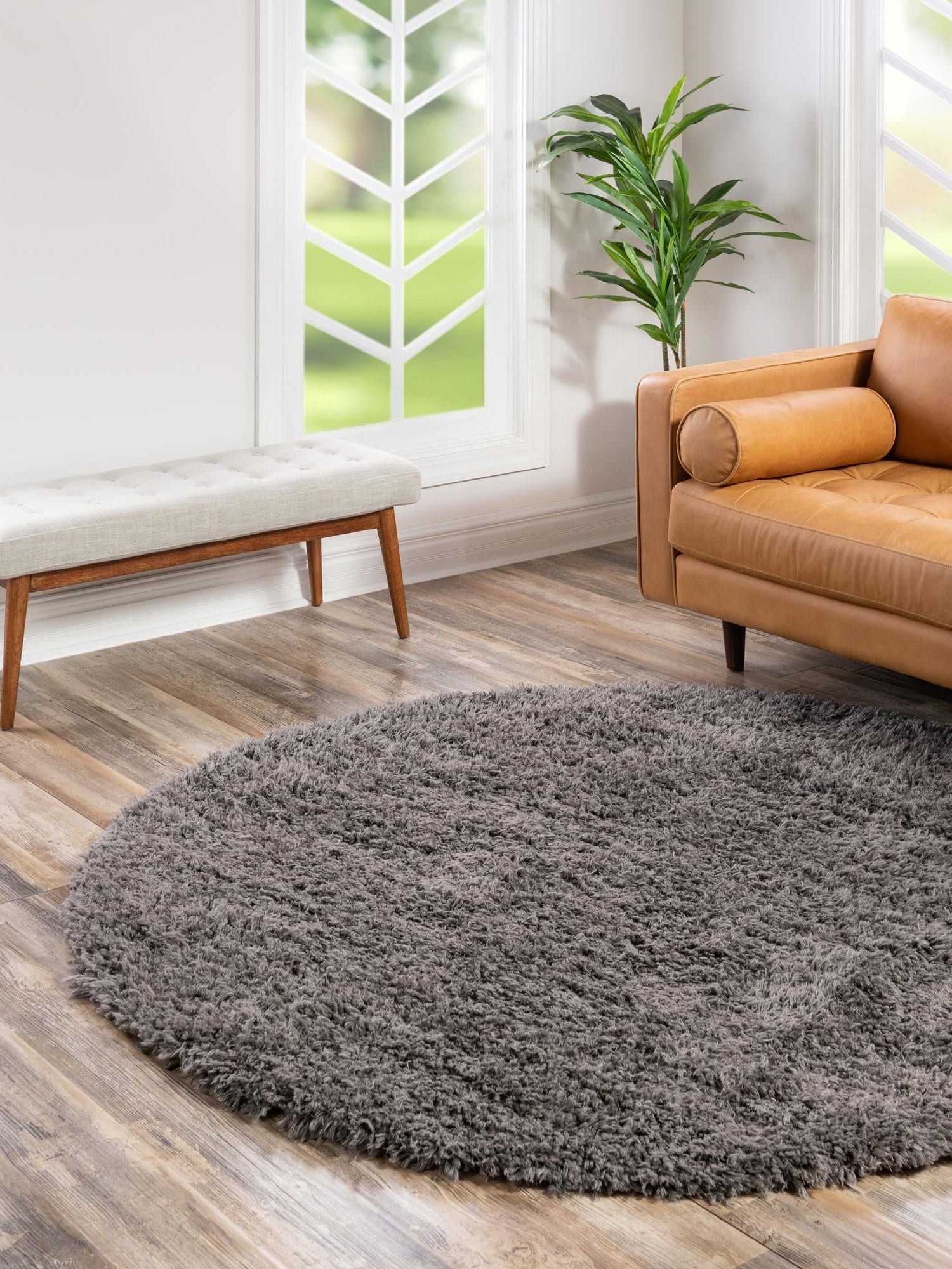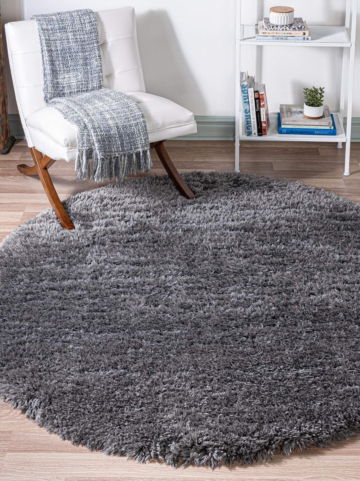 Smoke 5' 1 x 5' 1 Infinity Shag Round Area Rug Thick Soft Touch Fluffy & Plush Shaggy Pile 100% Polypropylene With Jute Backing Solid Color Minimalist Carpet