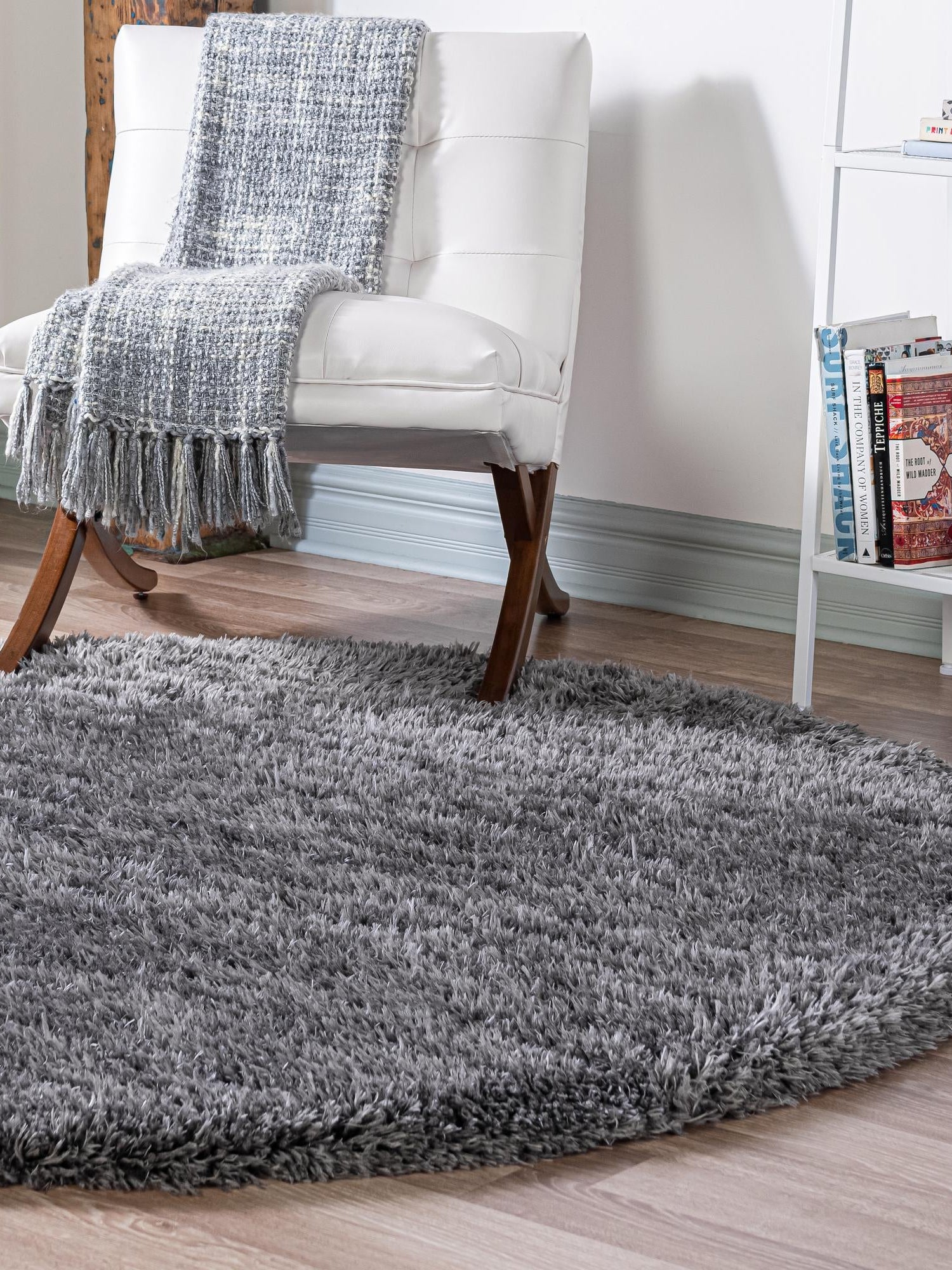 Smoke 5' 1 x 5' 1 Infinity Shag Round Area Rug Thick Soft T...