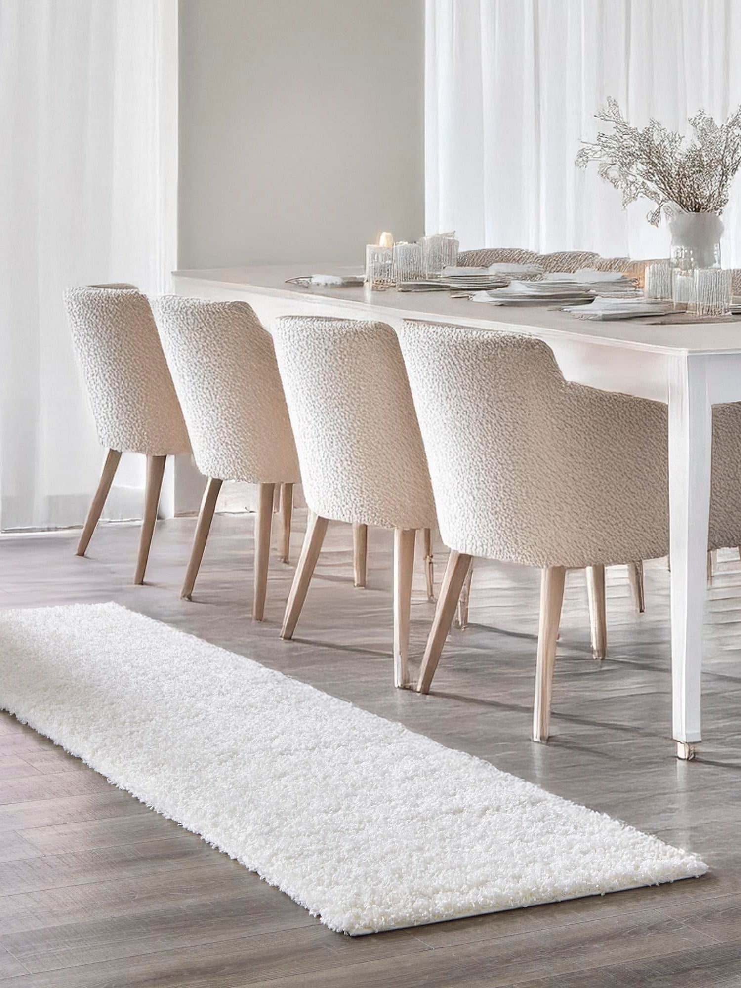 - Elegant Snow White Color: The pristine snow white color of this rug gives it a timeless appeal, making it an ideal choice for any décor style, from contemporary to traditional. It brightens up the space and adds a touch of elegance to your home. This versatile hue allows for easy coordination with various color palettes and furnishings.