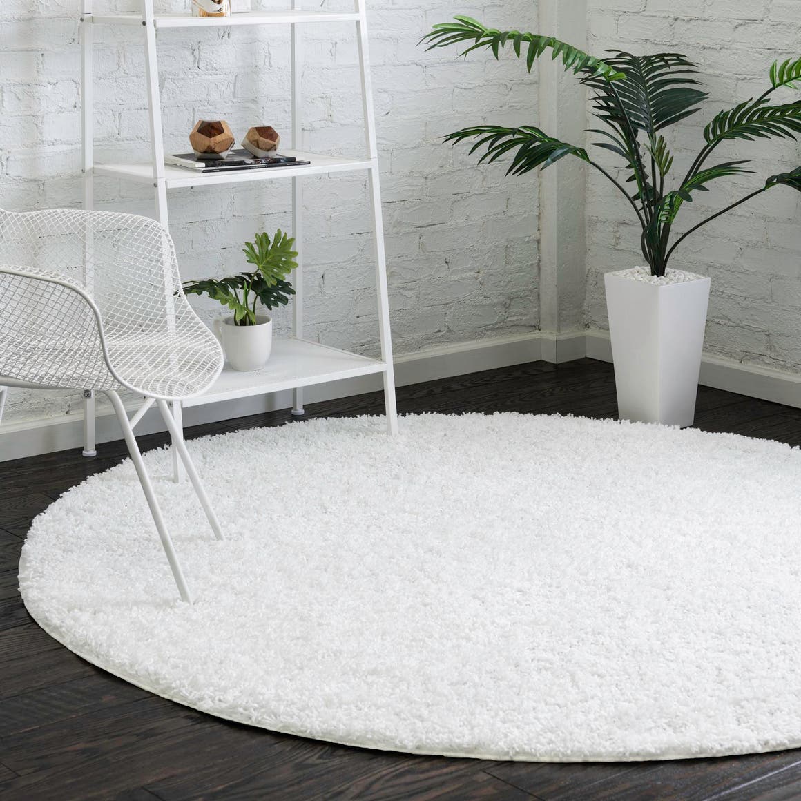 Snow White 4' x 4' Everyday Shag Round Area Rug Thick Soft Touch Fluffy & Plush Shaggy Pile 100% Polypropylene With Cotton Backing Durable Carpet