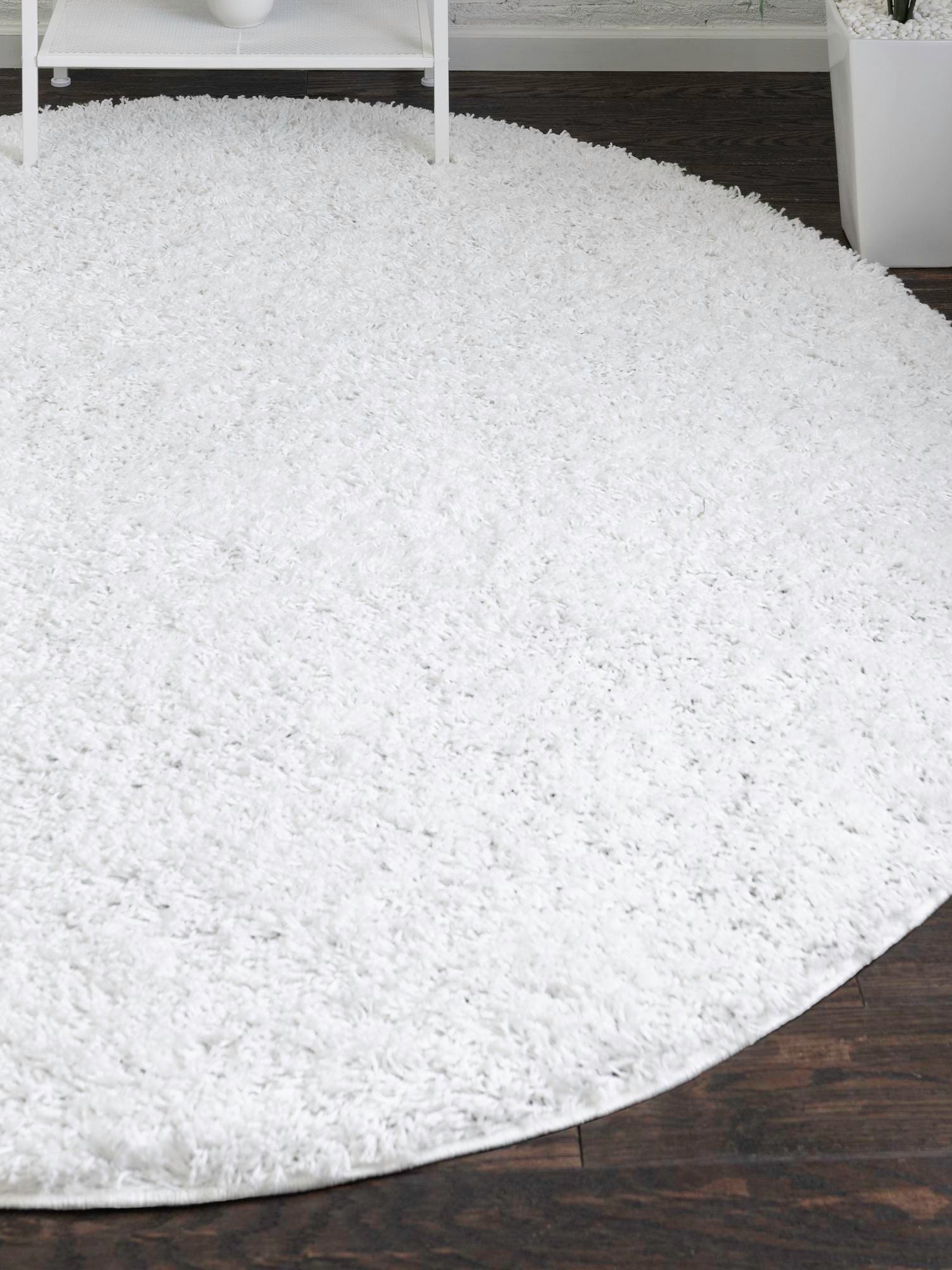 Snow White 5' x 5' Everyday Shag Round Area Rug Thick Soft Touch Fluffy & Plush Shaggy Pile 100% Polypropylene With Cotton Backing Durable Carpet