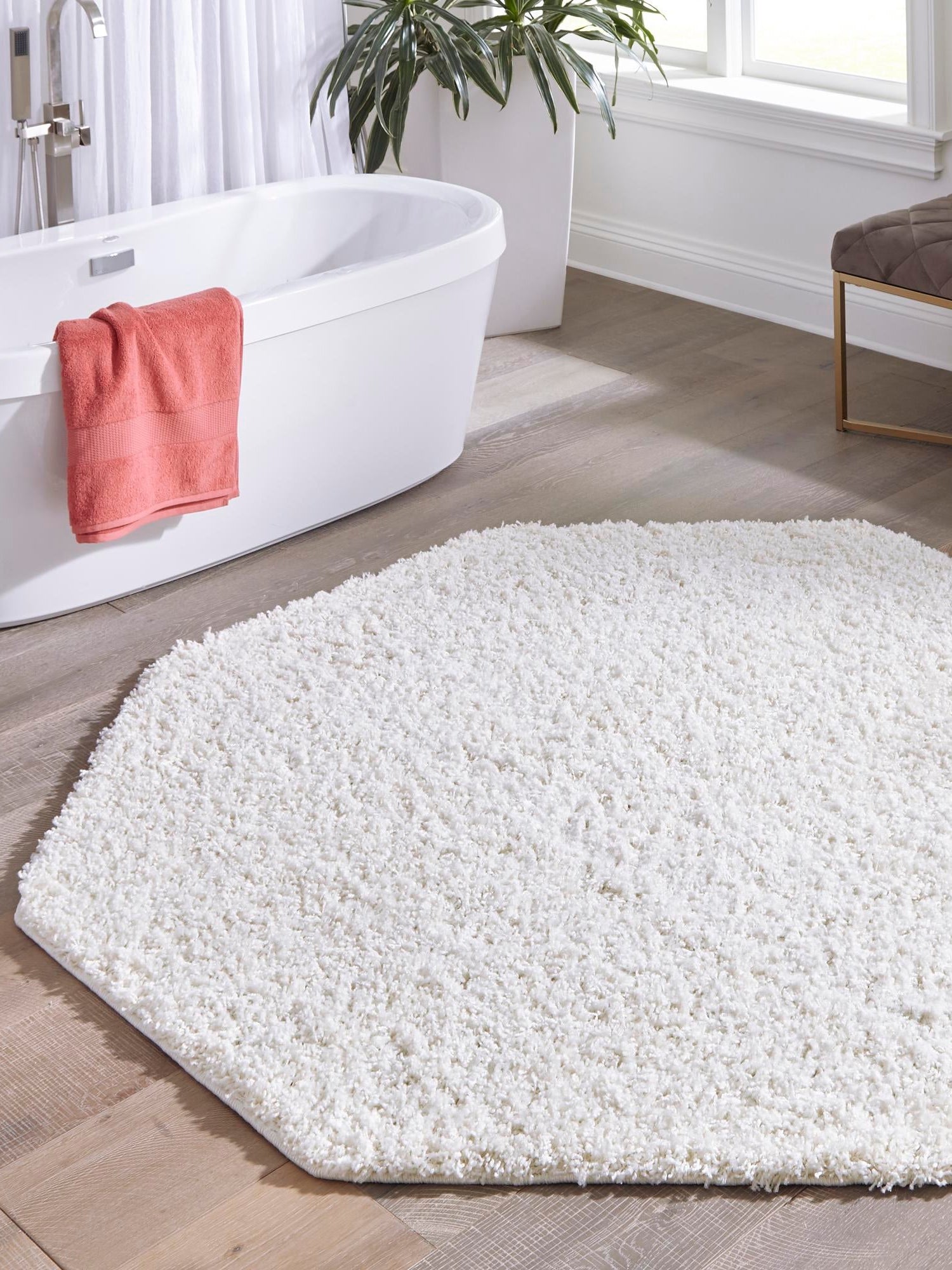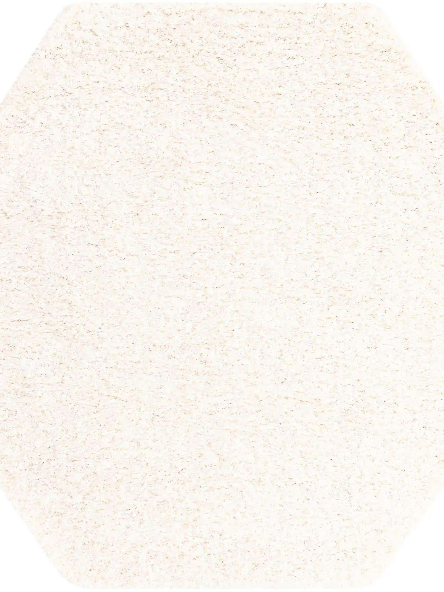 Snow White 6' 1 x 6' 1 Solid Shag Octagon Area Rug Thick Soft Touch Fluffy & Plush Shaggy Pile