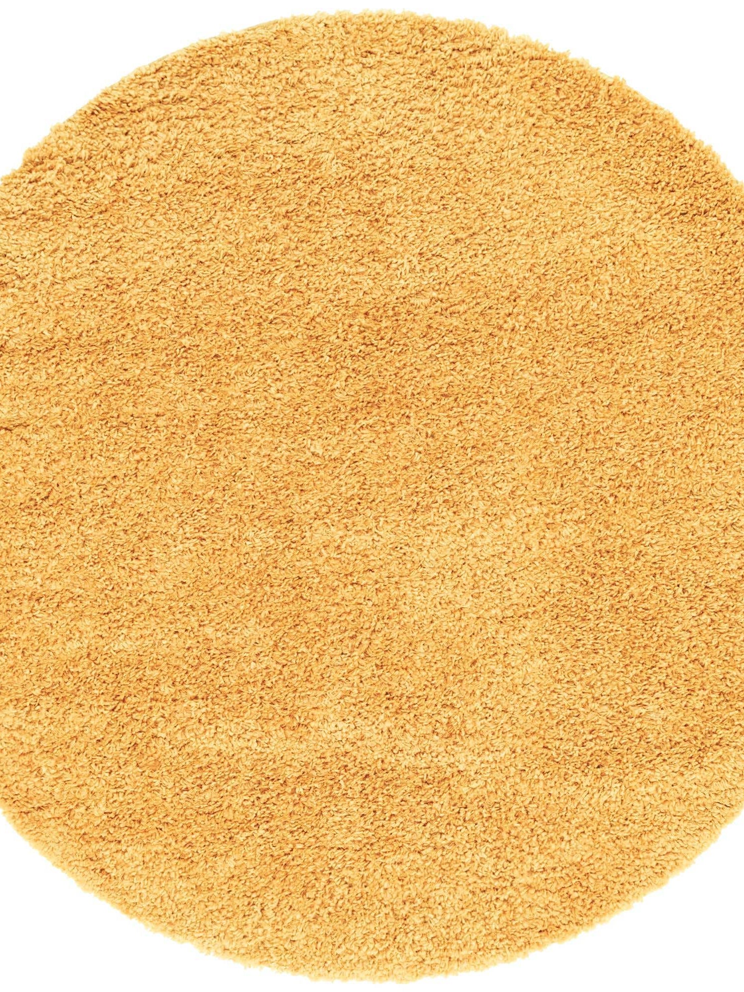 Sun Yellow 2' x 2' Davos Shag Round Area Rug Thick Soft Touch Fluffy & Plush Shaggy Pile 100% Polypropylene Carpet for Living Dining Bedrooms Office