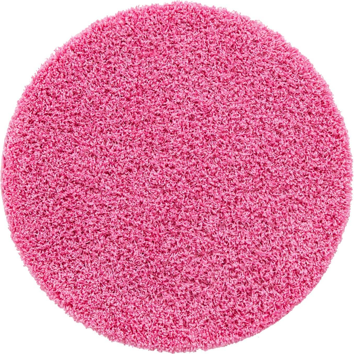 Taffy Pink 3' 1 x 3' 1 Solid Shag Round Area Rug Thick Soft Touch Fluffy & Plush Shaggy Pile